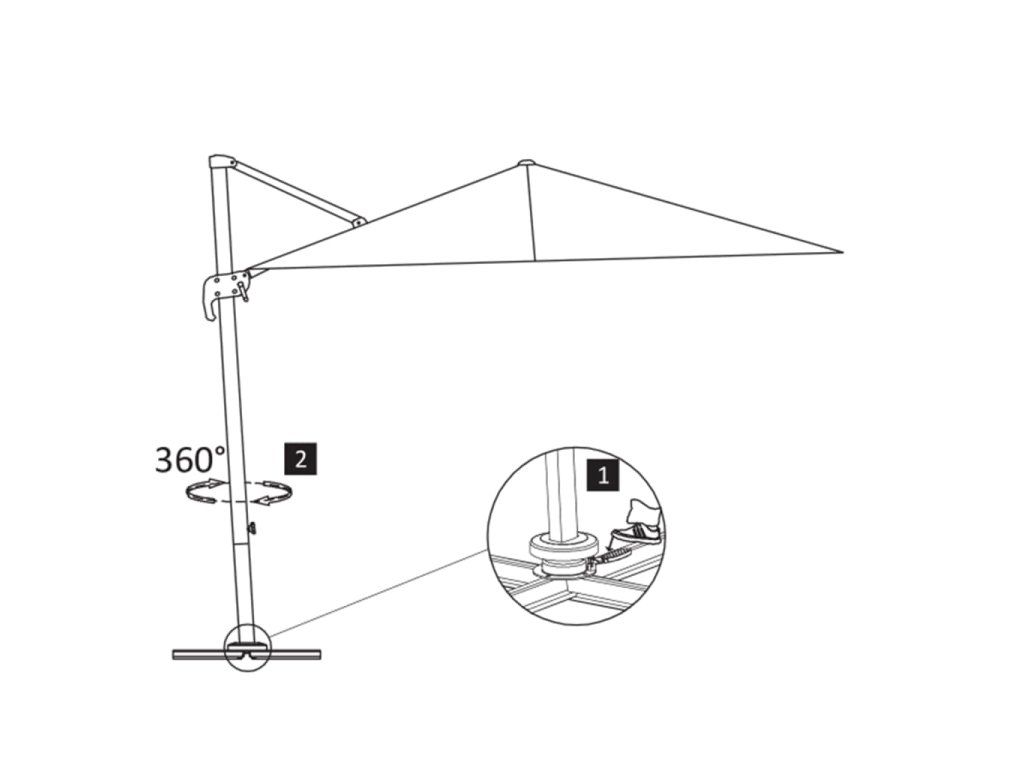 Ochranný kryt slnečníka je vyrobený z polyesteru s UV ochranou a odolnosťou proti vyblednutiu, poskytuje vám optimálnu ochranu pred slnkom a ľahko sa čistí. Má pevnú krížovú základňu pre väčšiu stabilitu. Náš záhradný slnečník sa dá ľahko otvoriť a zatvoriť jednoduchým otočením gombíka na tyči. Uhol krytu sa dá nastaviť zatlačením a potiahnutím rukoväte hore a dole. Stredná tyč sa dá tiež otáčať o 360 stupňov pomocou pedálu. Silná práškovo lakovaná hliníková tyč spolu s 8 odolnými rebrami robí tento slnečník veľmi stabilným a odolným. Montáž je jednoduchá.