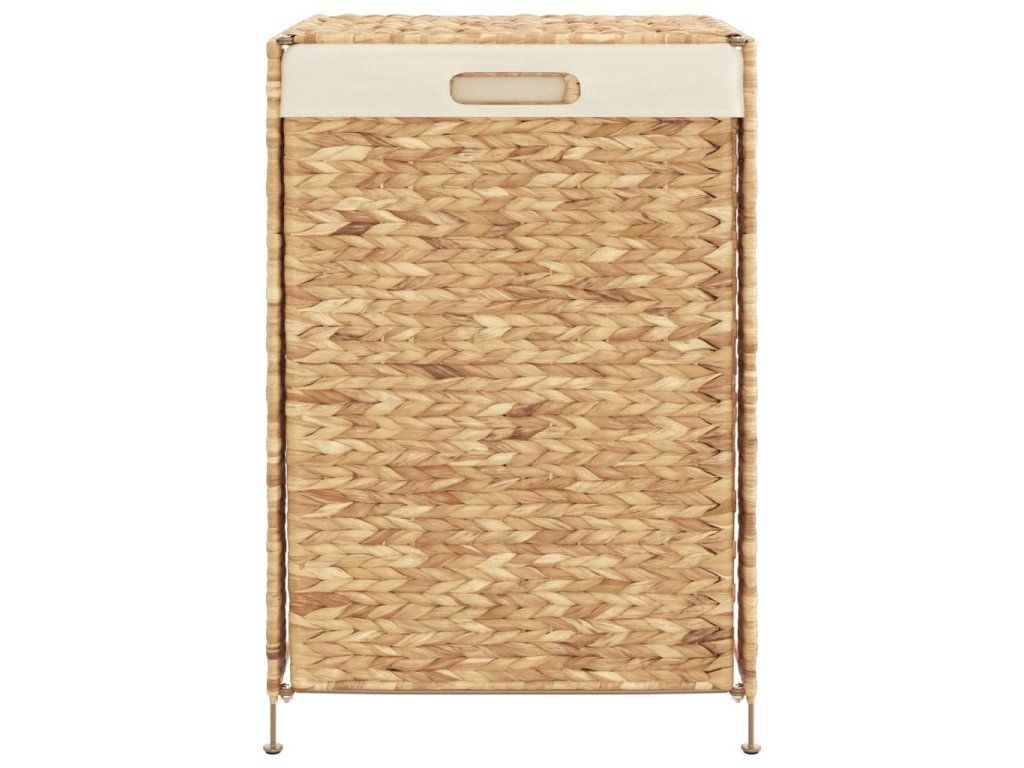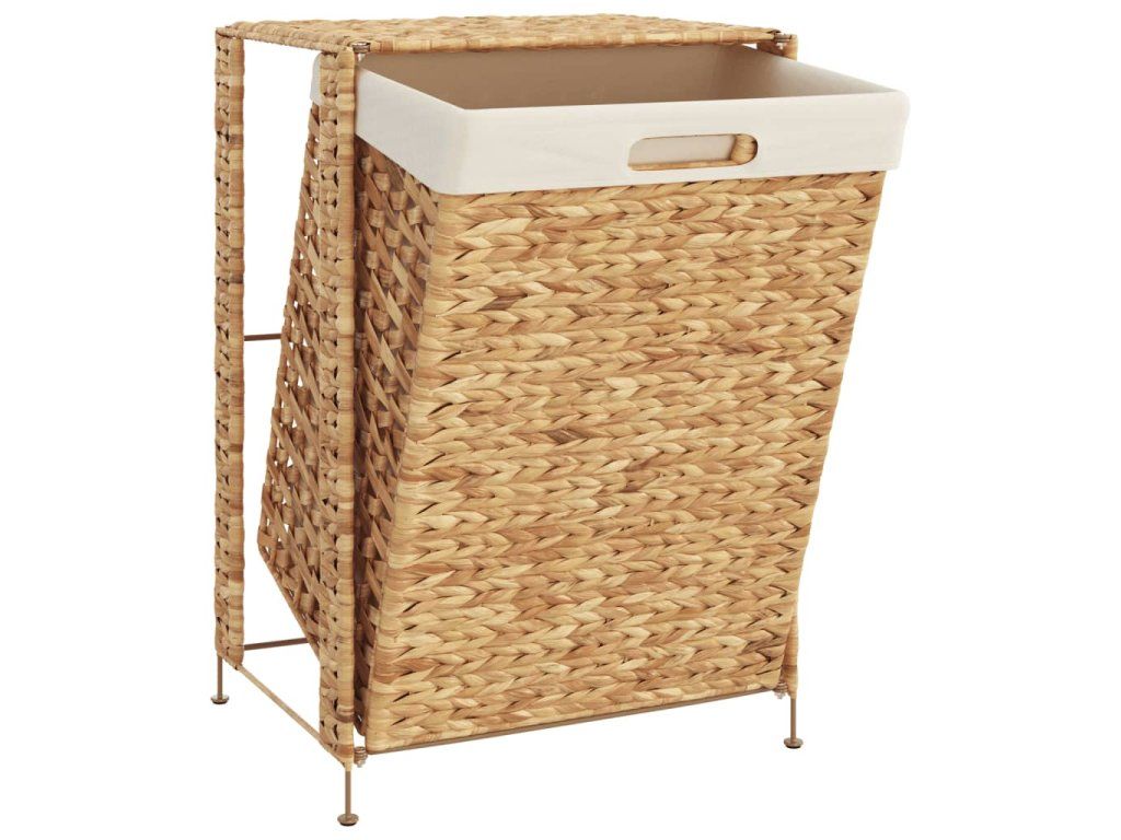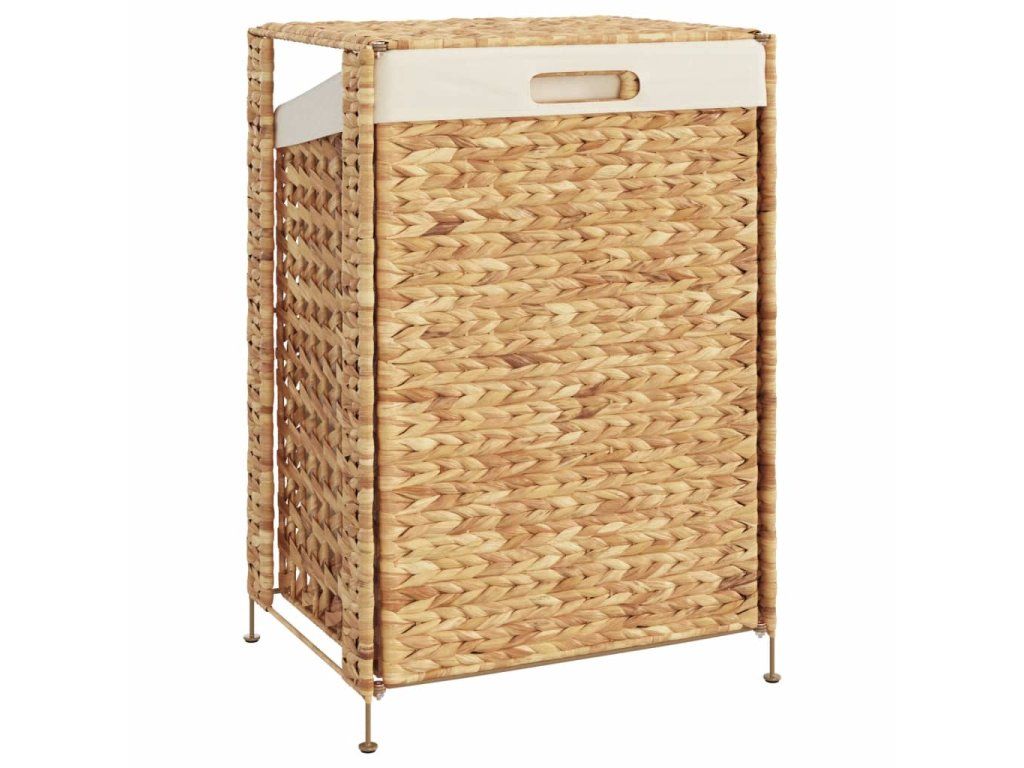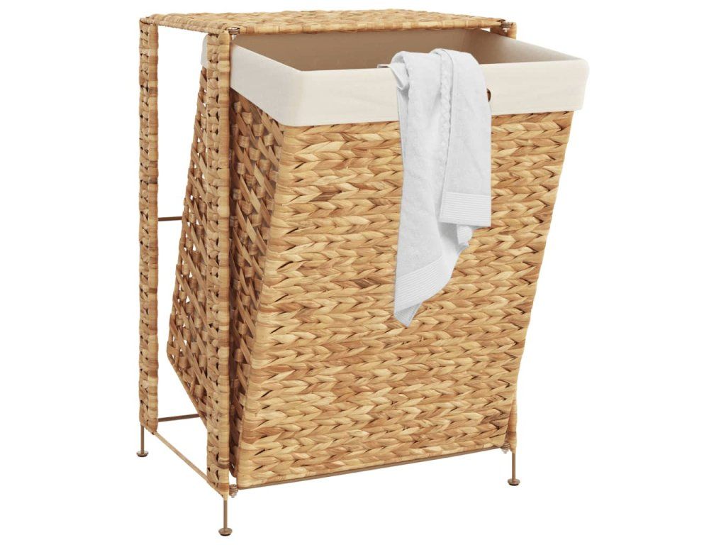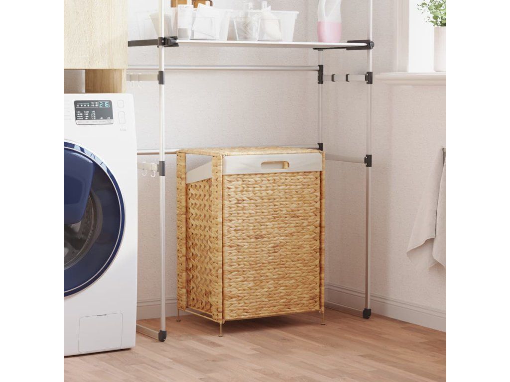 - Odolný materiál: Košík na bielizeň je vyrobený z vodného hyacintu s pevným kovovým rámom, vďaka čomu je pevný a odolný.