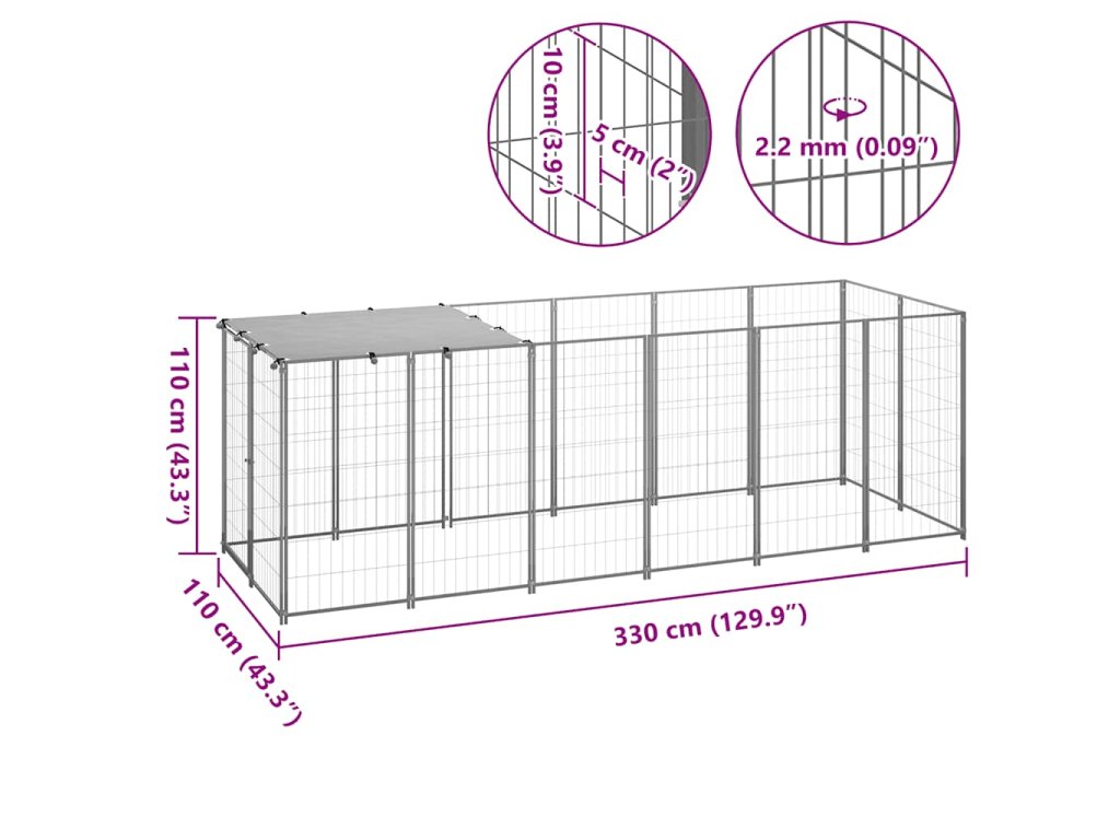 Multidom Koterec pre psa strieborný 330x110x110 cm oceľ