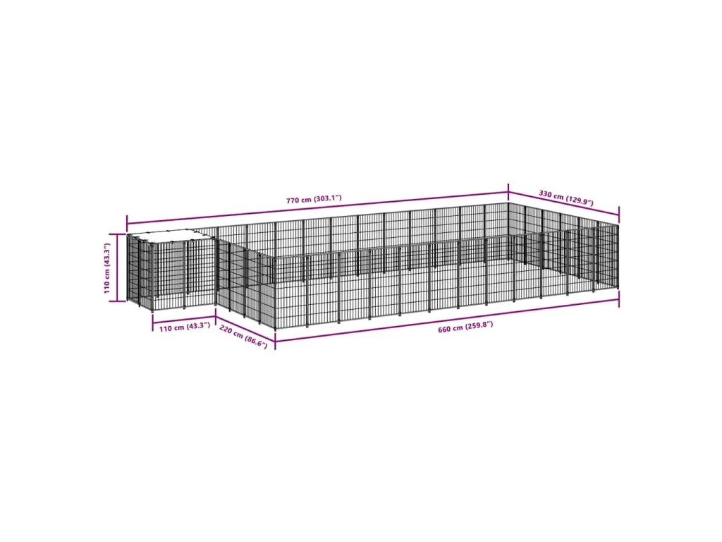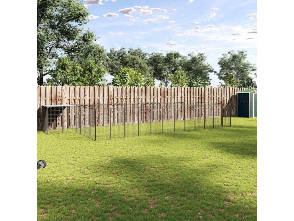 Veľká klietka pre psov poskytuje dostatok priestoru na cvičenie, zatiaľ čo oceľová drôtená stena pomáha predchádzať neočakávaným nehodám a zároveň umožňuje vetranie. Vďaka pevnej oceľovej konštrukcii je táto klietka pre domáce zvieratá odolná a vyrobená tak, aby vydržala. Dodáva sa s polyetylénovou strechou, ktorá je odolná voči vode a UV žiareniu. Dvere majú navyše uzamykateľnú západku, ktorá zaisťuje mimoriadnu bezpečnosť a ochranu vašich psov.