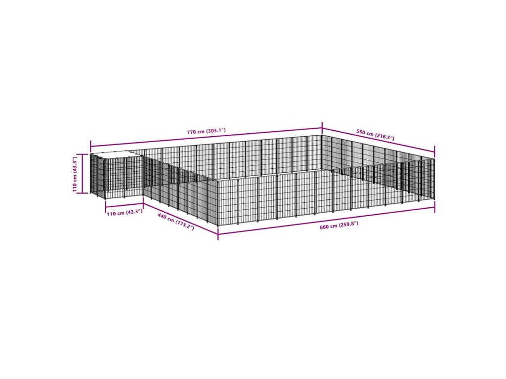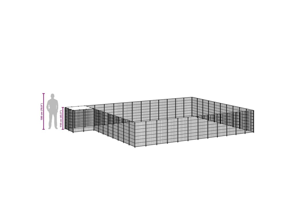 Veľká klietka pre psov poskytuje dostatok priestoru na cvičenie, zatiaľ čo oceľová drôtená stena pomáha predchádzať neočakávaným nehodám a zároveň umožňuje vetranie. Vďaka pevnej oceľovej konštrukcii je táto klietka pre domáce zvieratá odolná a vyrobená tak, aby vydržala. Dodáva sa s polyetylénovou strechou, ktorá je odolná voči vode a UV žiareniu. Dvere majú navyše uzamykateľnú západku, ktorá zaisťuje mimoriadnu bezpečnosť a ochranu vašich psov.