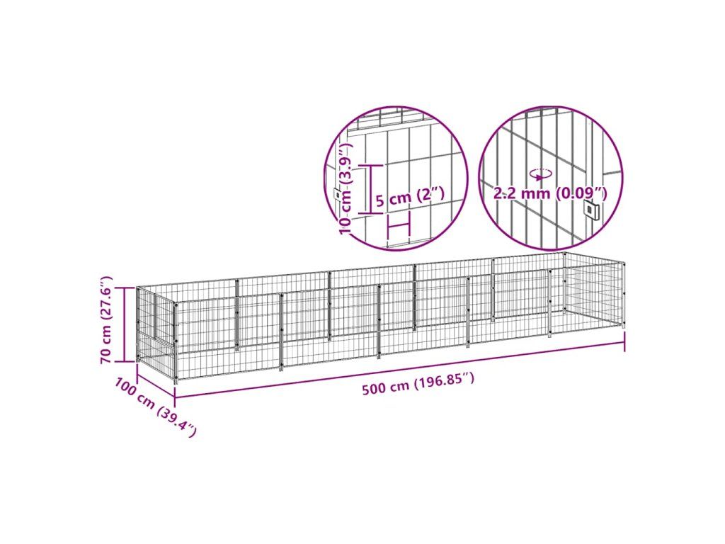 Veľká klietka pre psa poskytuje dostatok priestoru na cvičenie. Stena z oceľového pletiva pomáha predchádzať neočakávaným nehodám a zároveň umožňuje vetranie. Vďaka robustnej oceľovej konštrukcii je tento výbeh pre domáce zvieratá odolný a vyrobený tak, aby vydržal čo najdlhšie. Dvere majú navyše uzamykateľnú západku, ktorá zaisťuje dodatočnú bezpečnosť a ochranu vašich psov.
