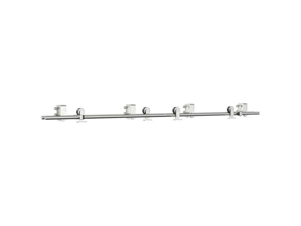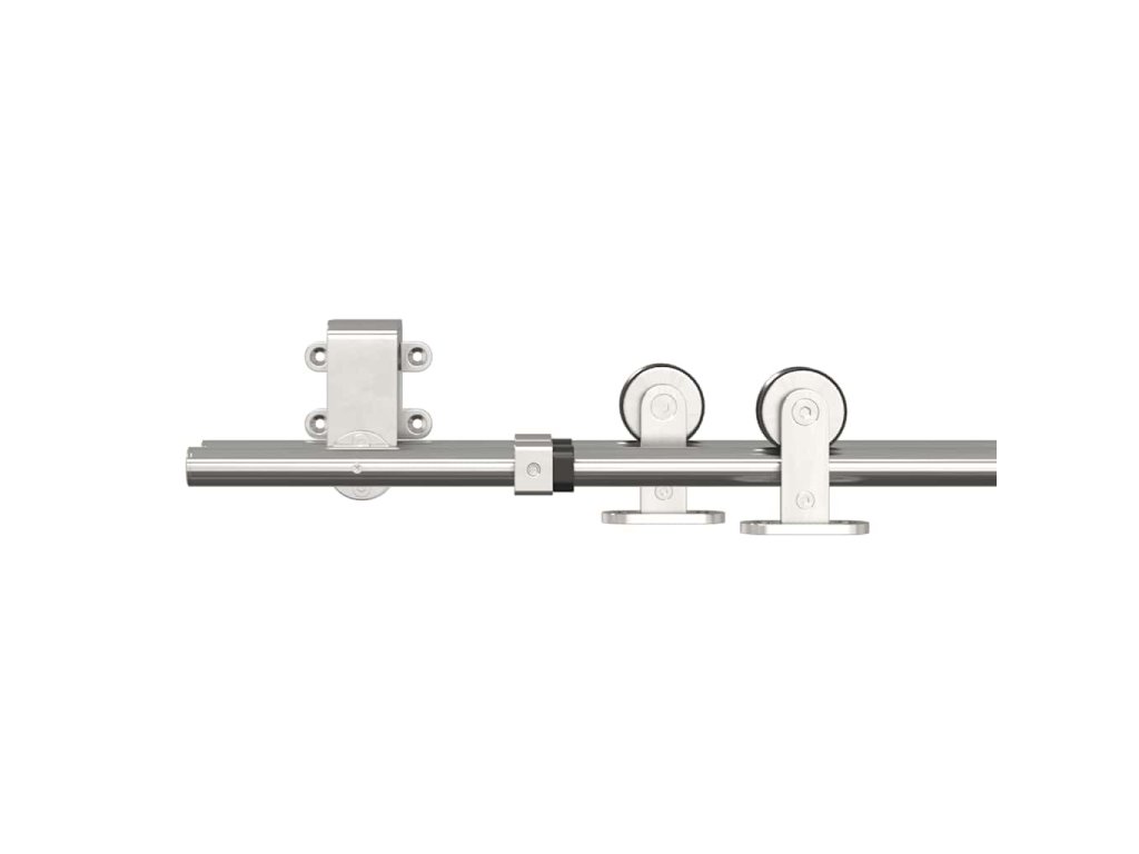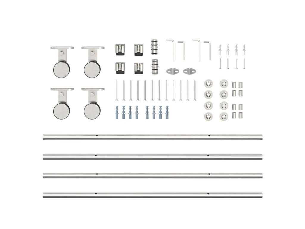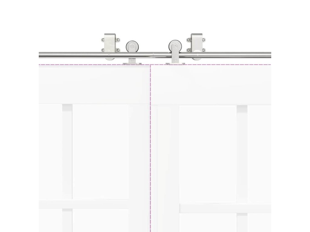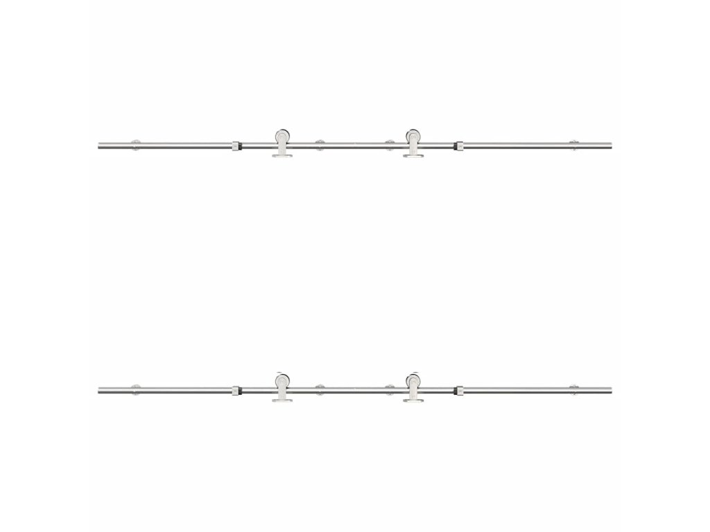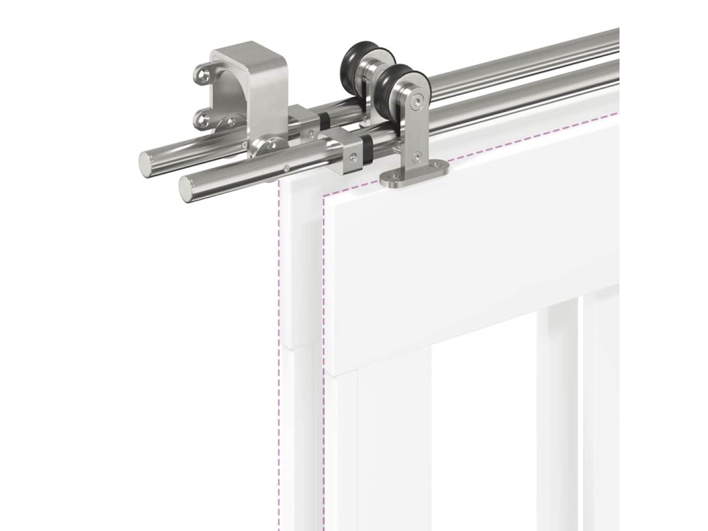 S touto súpravou kovania na posuvné dvere môžete jednoducho nastaviť dvojité koľajnice pre pár dverí, ktoré sa budú posúvať pred sebou a za sebou.