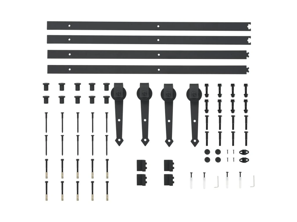 V balení sa nachádzajú 4 posuvné koľajnice, 4 valčeky, 4 zarážky na dvere, 2 podlahové lišty, 4 bloky proti vykoľajeniu, 10 upevňovacích svoriek a ďalšie potrebné náradie. Poznámka: Dvere nie sú súčasťou balenia.