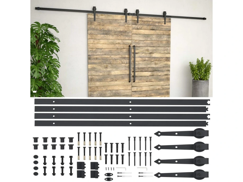 Táto súprava na zavesenie posuvných dverí obsahuje 2 kvalitné posuvné koľajnice (s celkovou dĺžkou 183 cm) a 2 valčeky odolné voči opotrebovaniu. Posuvné koľajnice sú vyrobené z ocele s práškovou povrchovou úpravou, ktorá je pevná, trvácna a odolná. Vďaka vnútorným ložiskám sa dvere budú pohybovať hladko a potichu. Súčasťou balenia sú aj zarážky, ktoré zabránia tomu, aby sa valčeky vykoľajili, a gumové tesnenia stlmia ich náraz, a tak znížia hlučnosť. Kovanie na posuvné dvere je navyše vybavené vysokokvalitnou podlahovou lištou, ktorá slúži na stabilizáciu pohybu dverí.