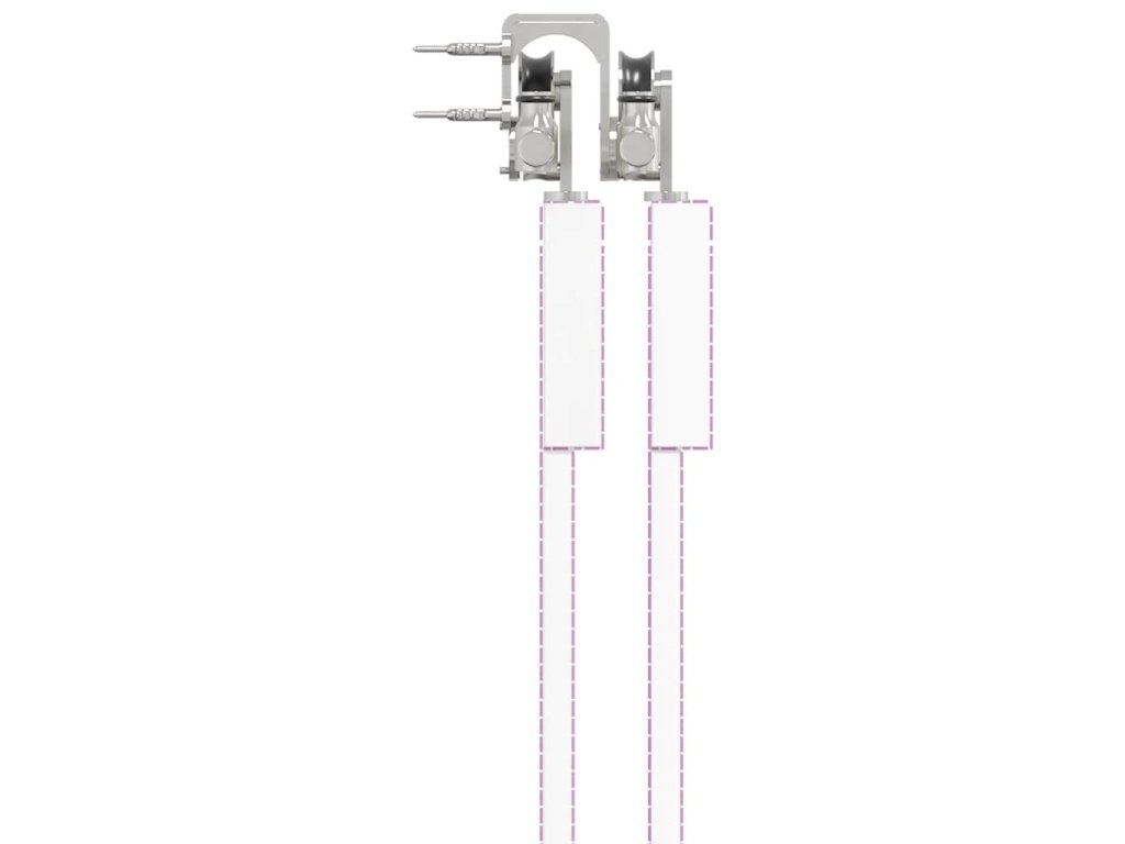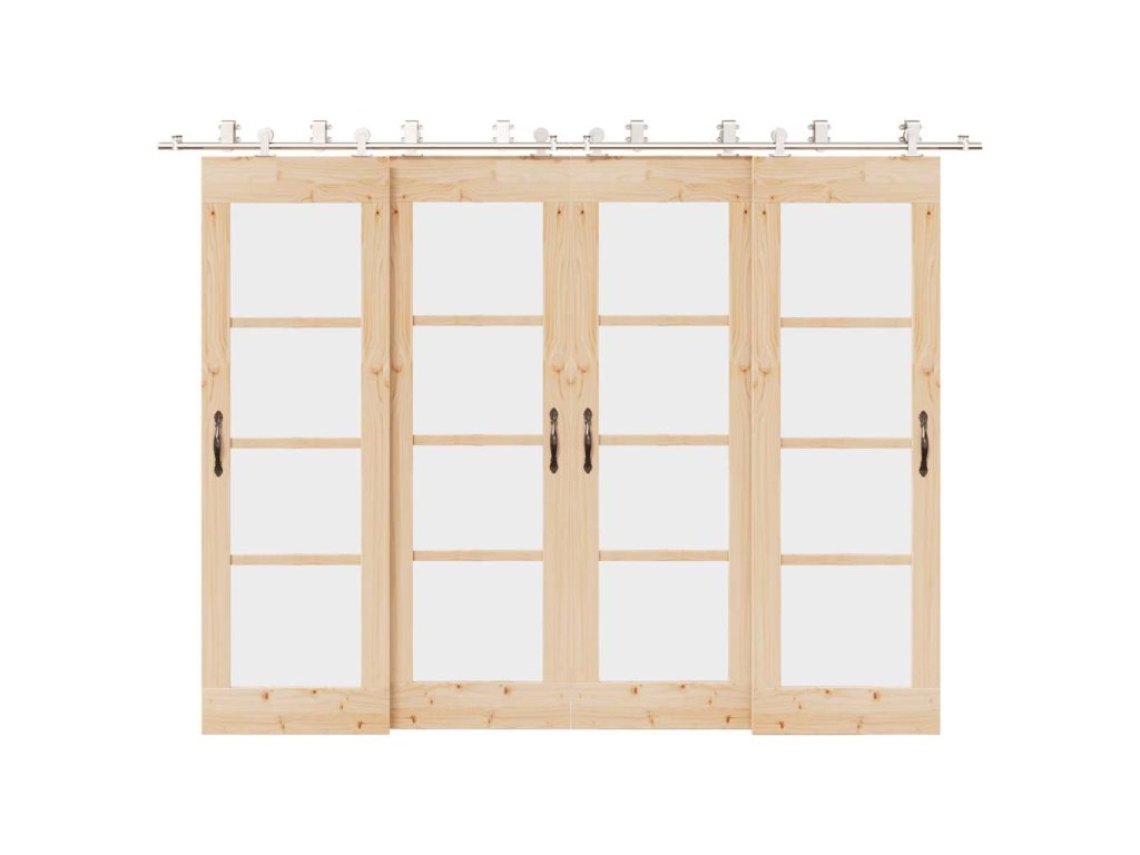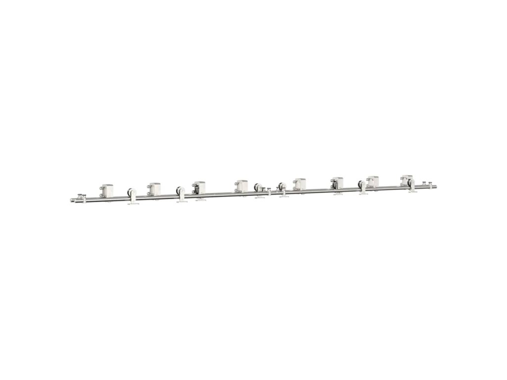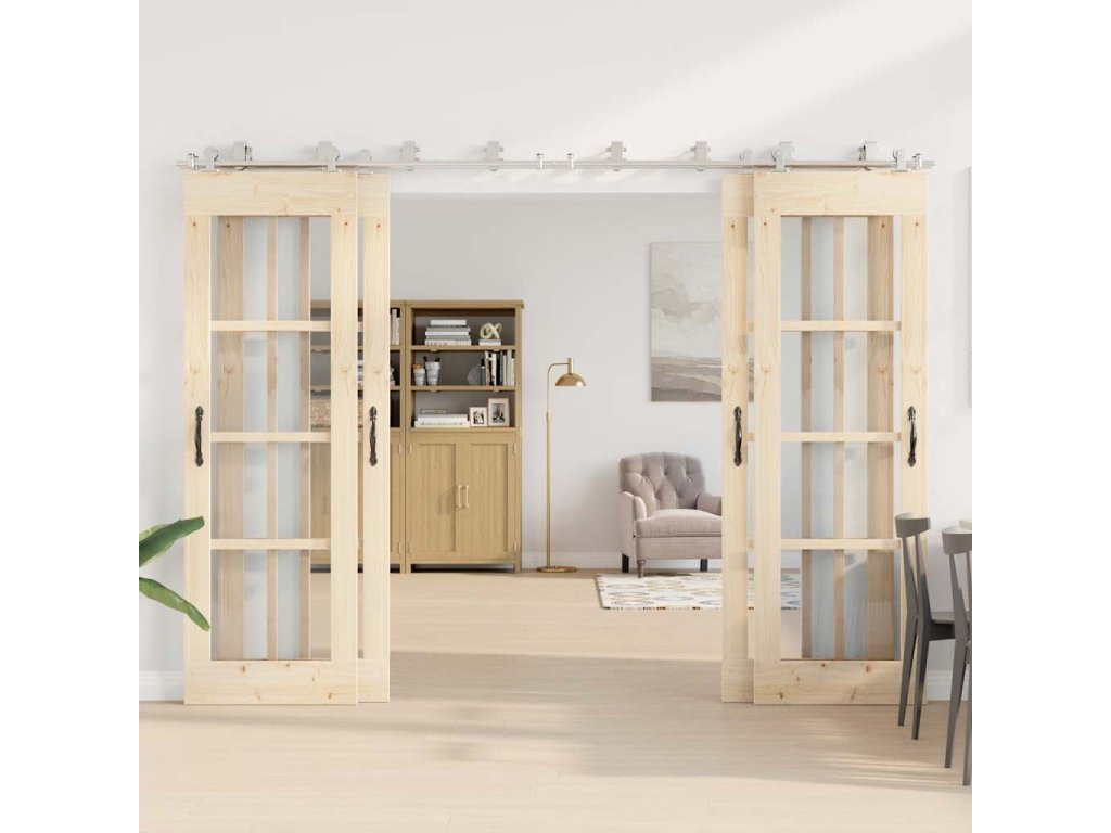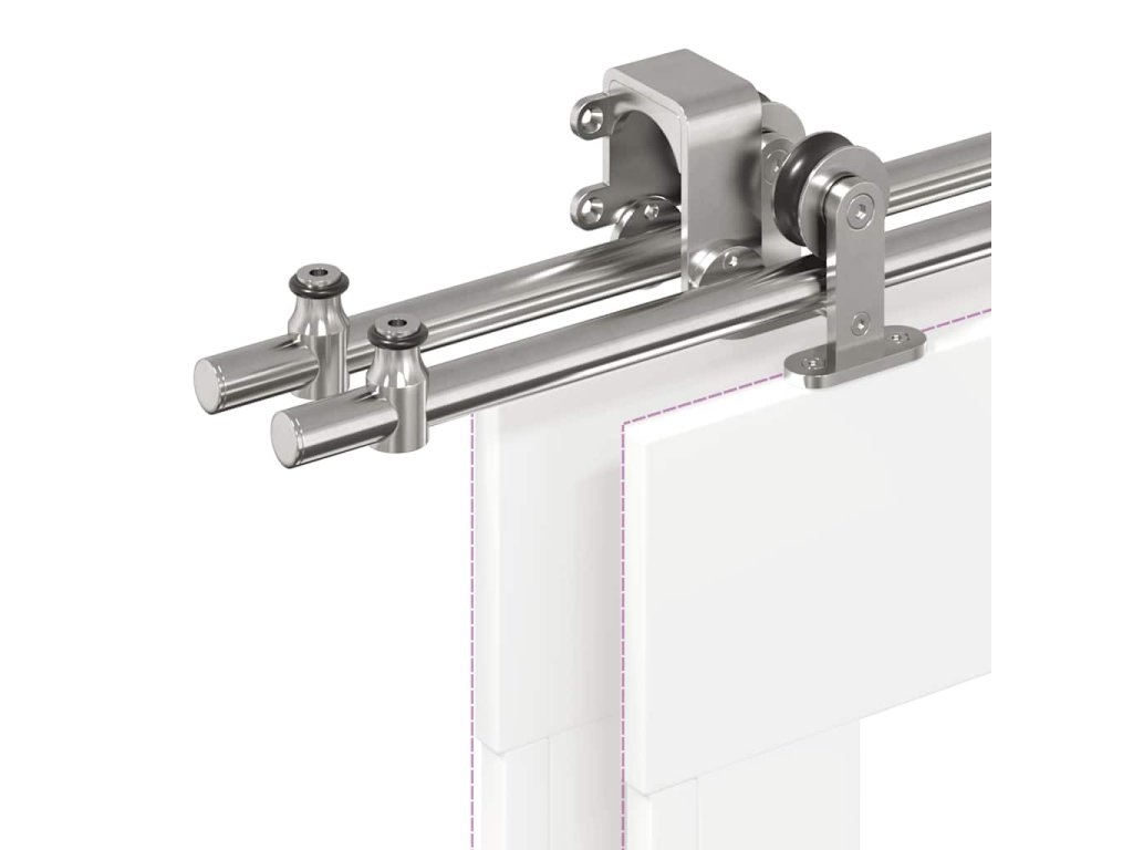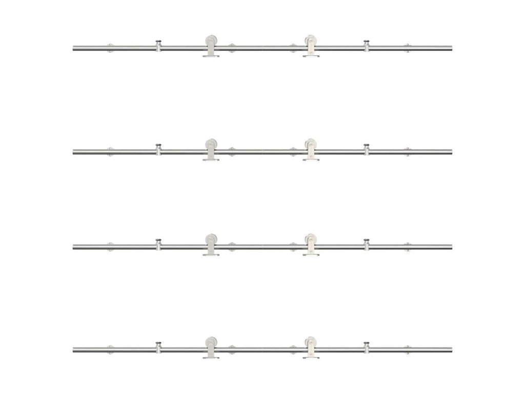 S touto súpravou kovania na posuvné dvere môžete jednoducho nastaviť dvojité koľajnice pre pár dverí, ktoré sa budú posúvať pred sebou a za sebou.