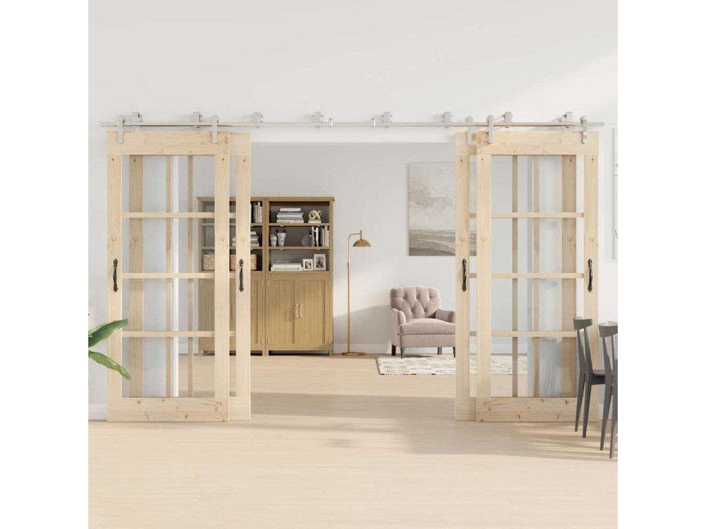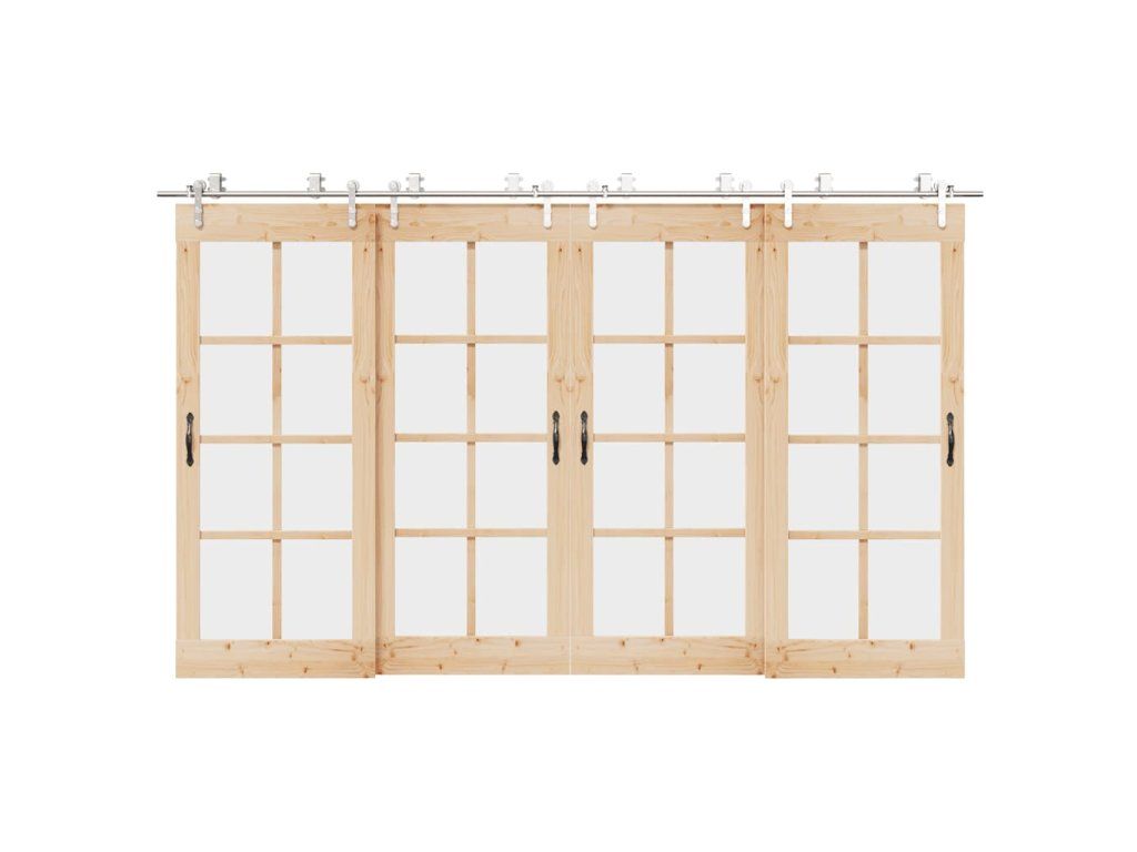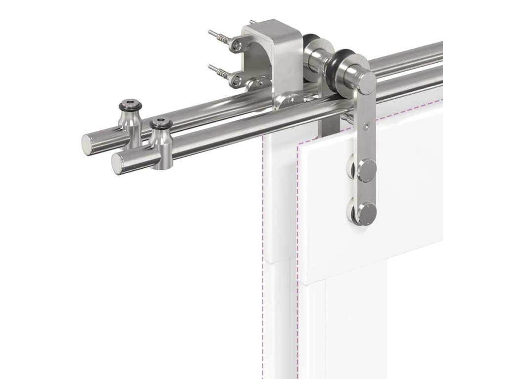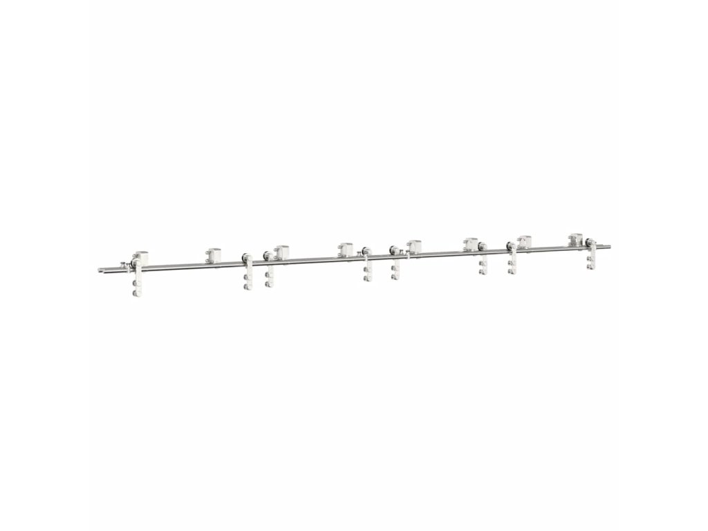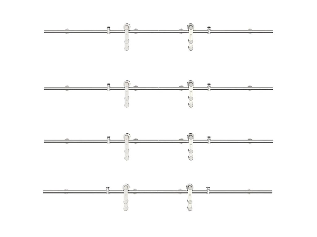 S touto súpravou kovania na posuvné dvere môžete jednoducho nastaviť dvojité koľajnice pre pár dverí, ktoré sa budú posúvať pred sebou a za sebou.