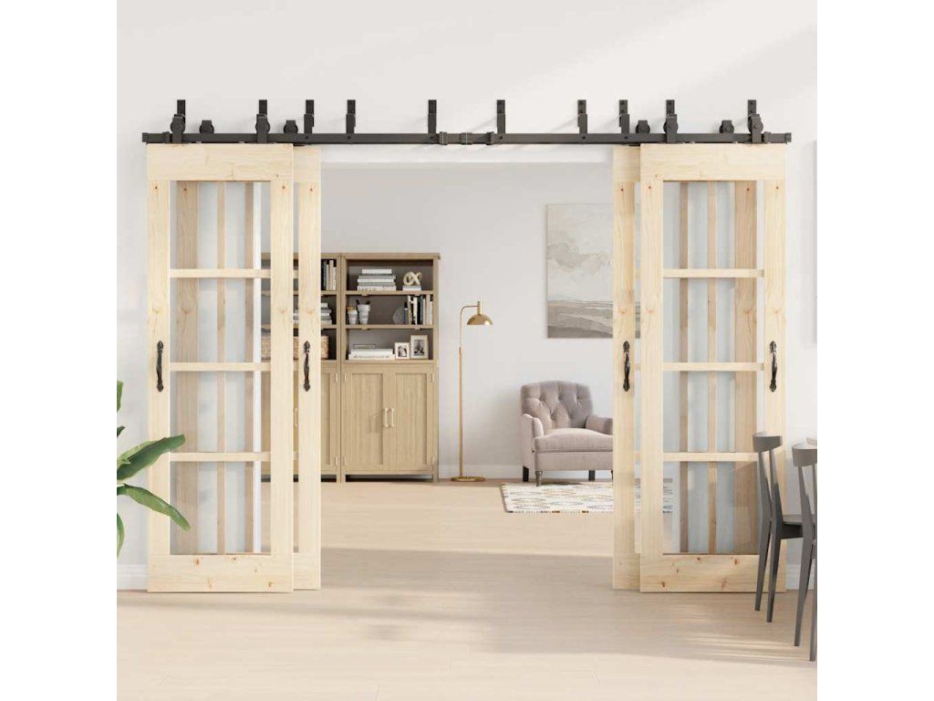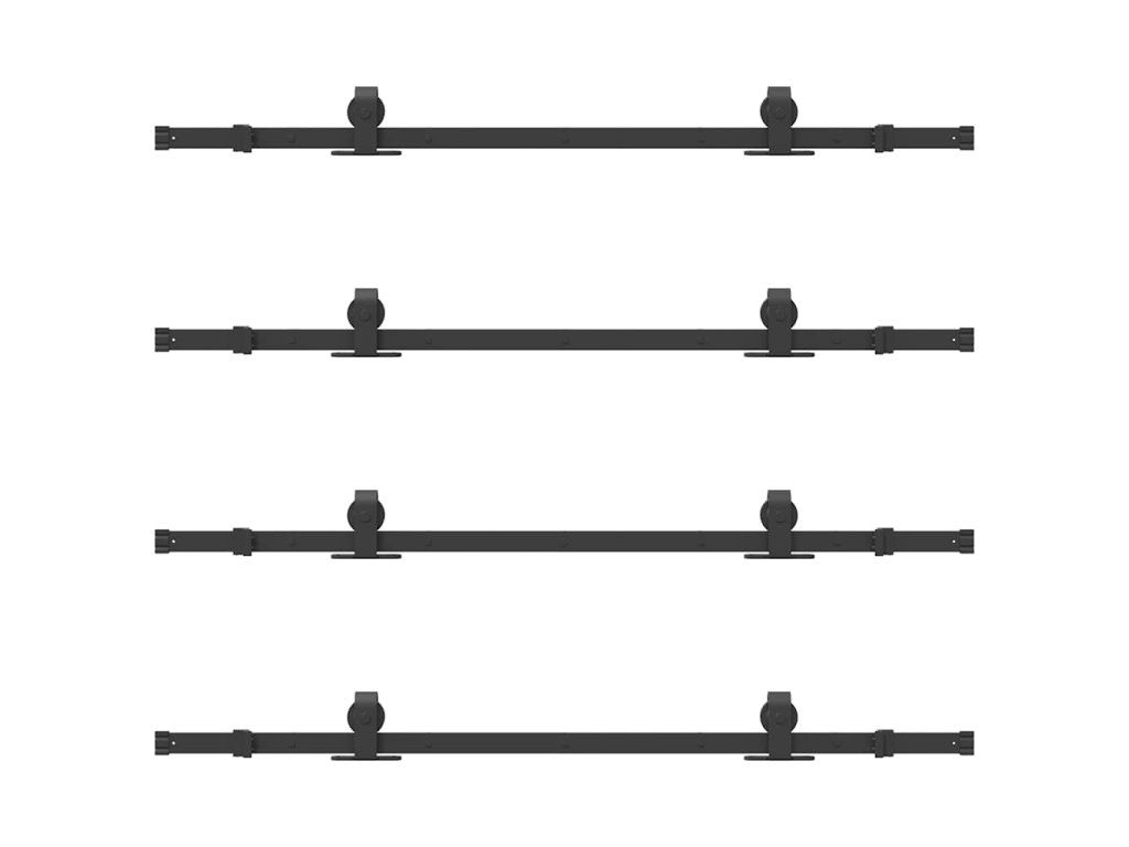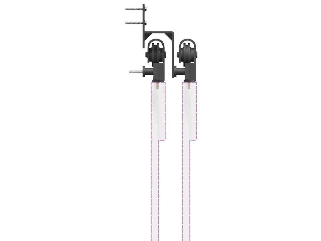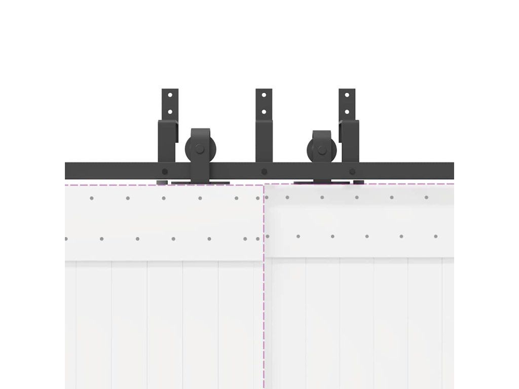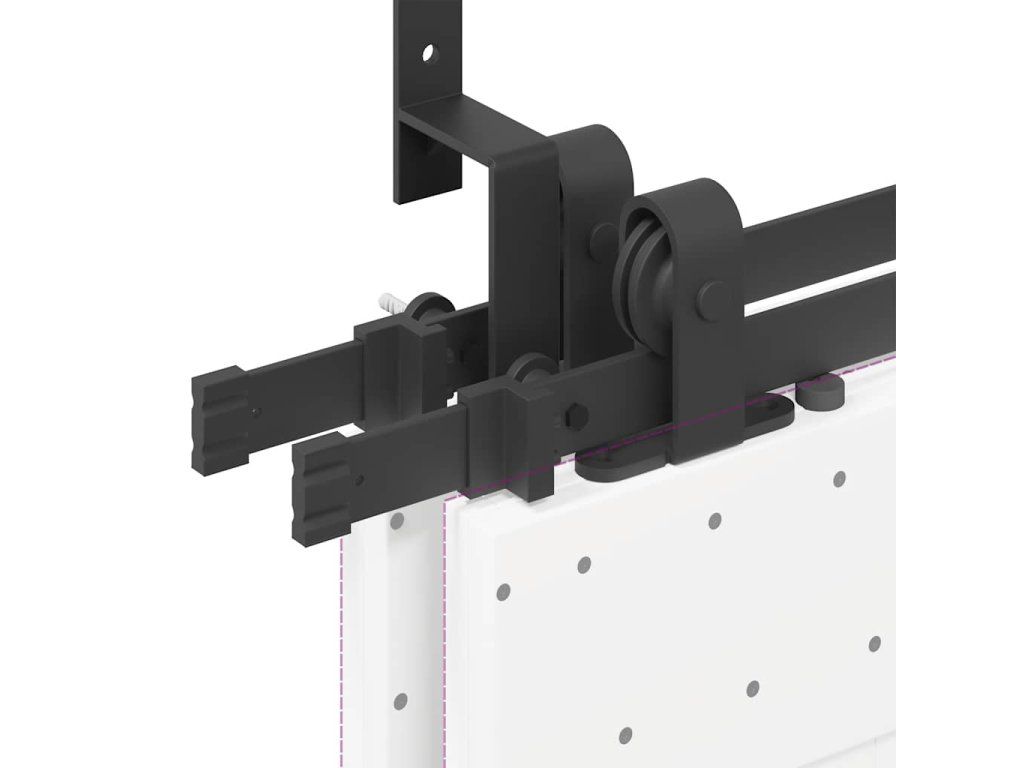 S touto súpravou kovania na posuvné dvere môžete jednoducho nastaviť dvojité koľajnice pre pár dverí, ktoré sa budú posúvať pred sebou a za sebou.