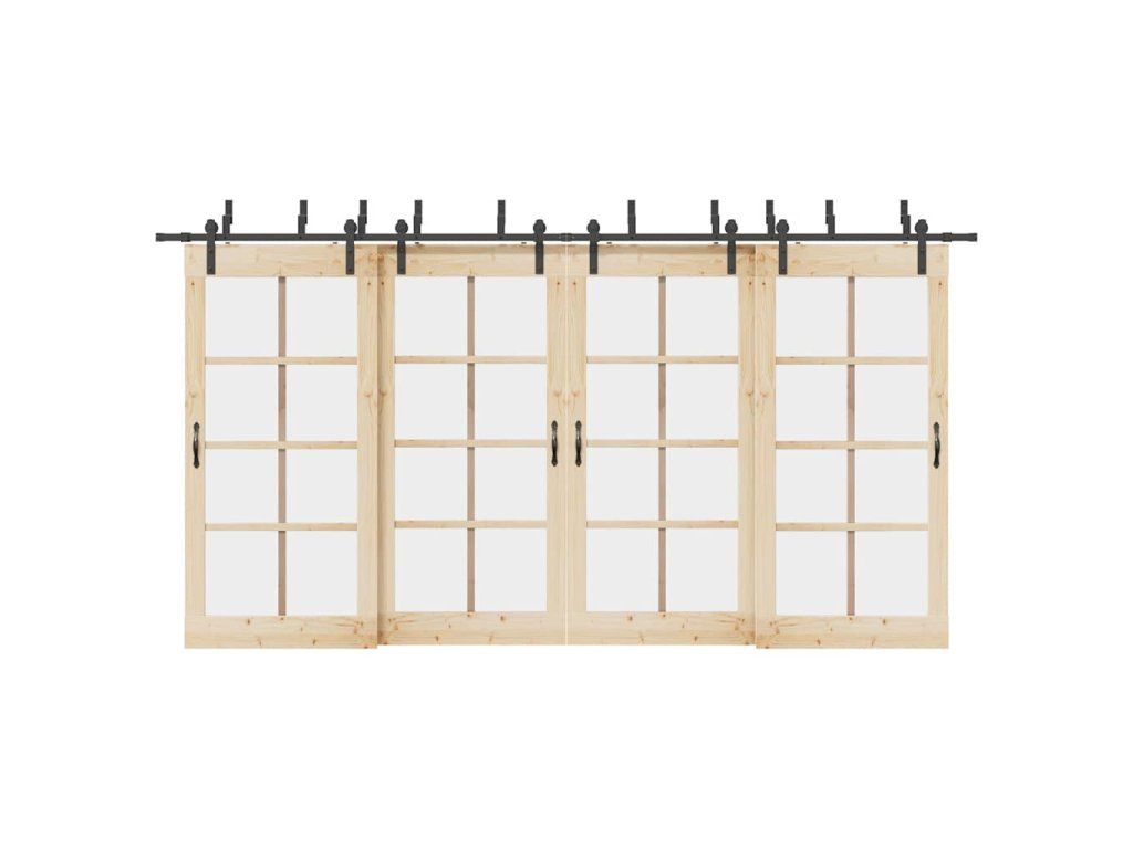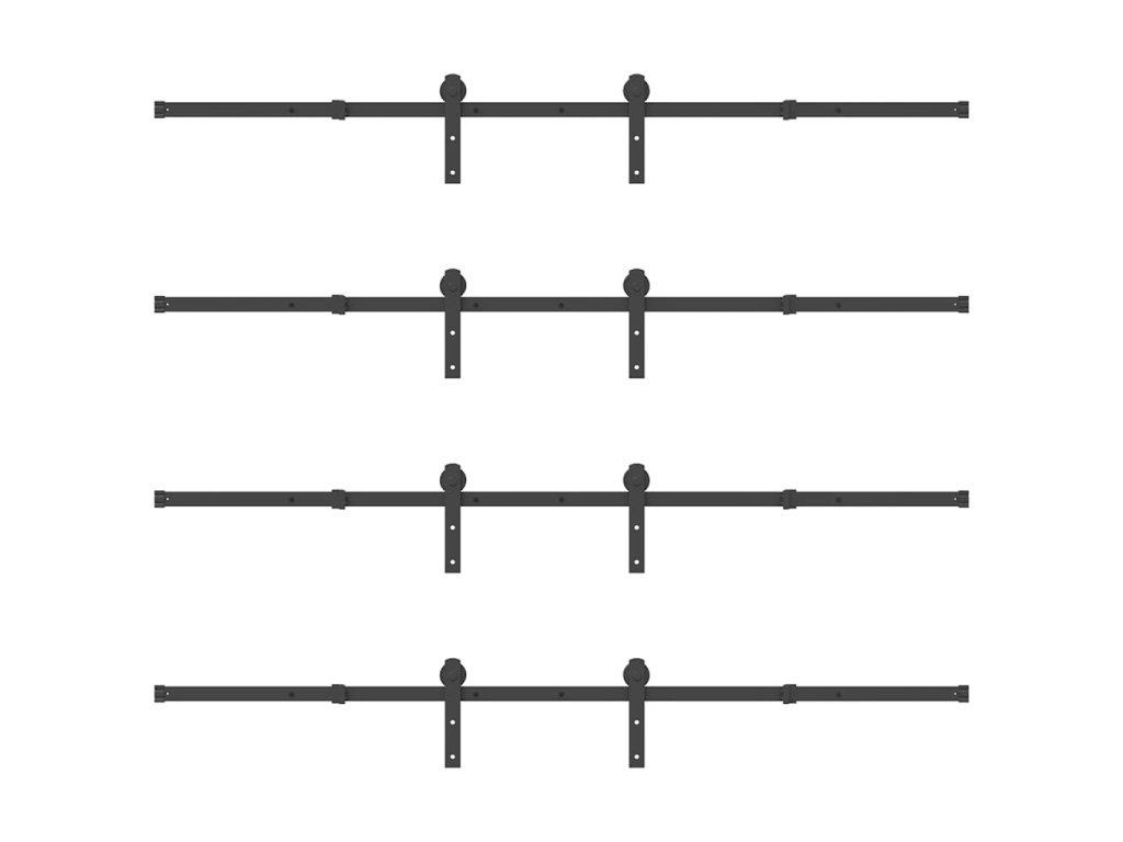 S touto súpravou kovania na posuvné dvere môžete jednoducho nastaviť dvojité koľajnice pre pár dverí, ktoré sa budú posúvať pred sebou a za sebou.