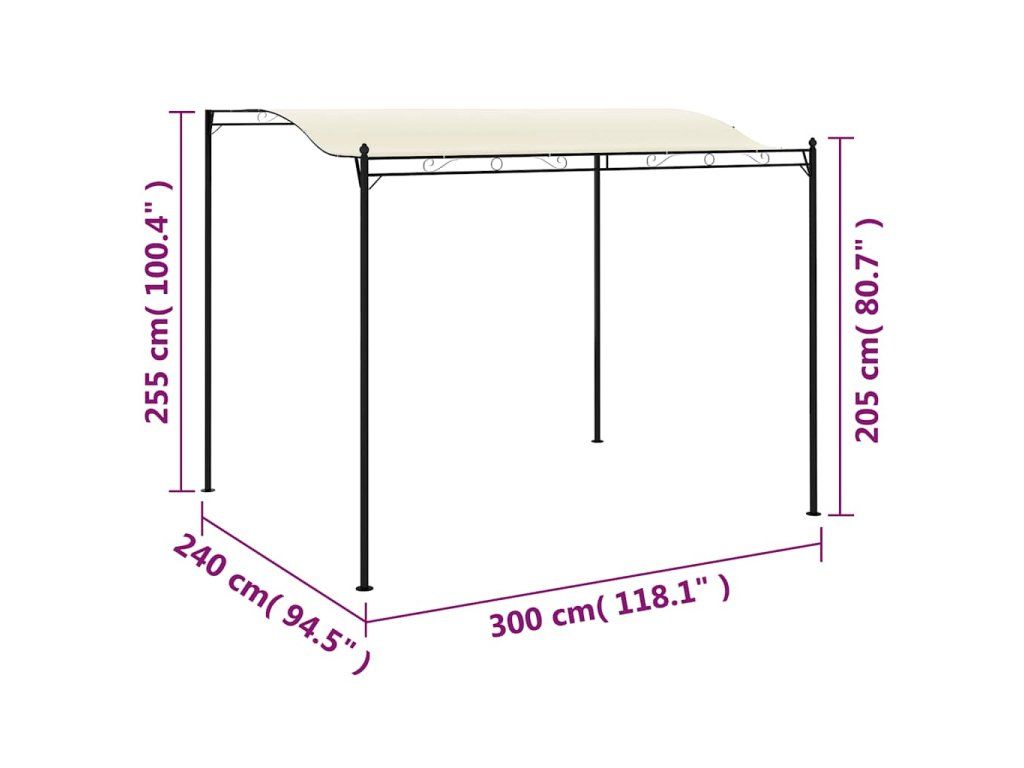 Altánok pozostáva z pevnej oceľovej konštrukcie a polyesterového baldachýnu. Dá sa veľmi jednoducho poskladať.