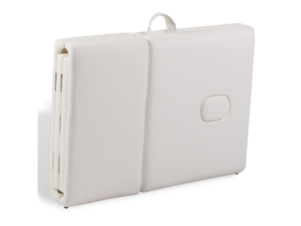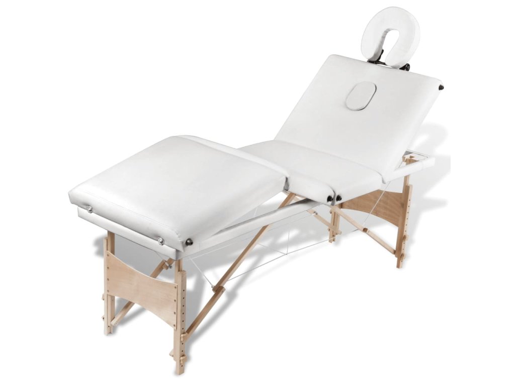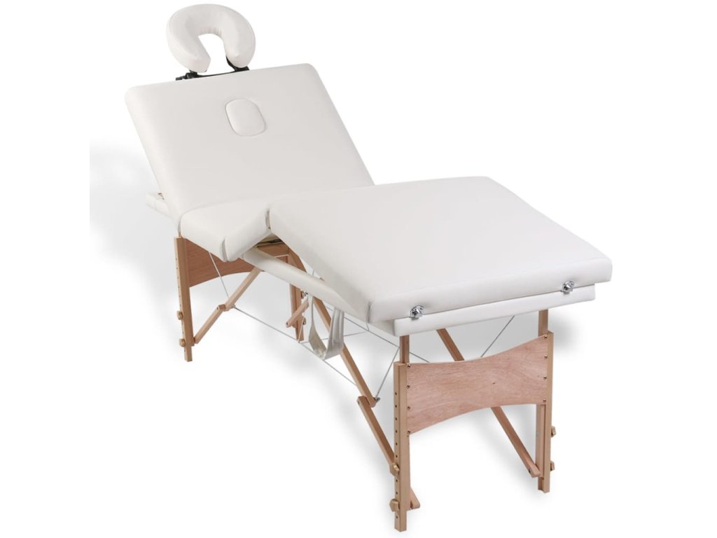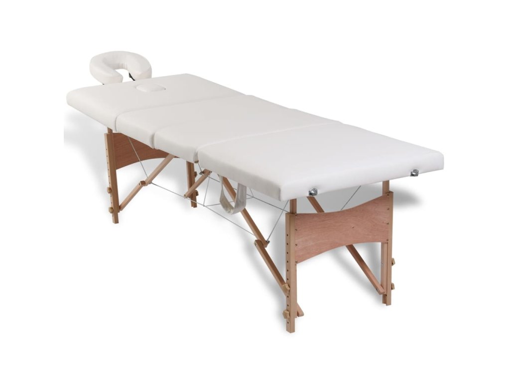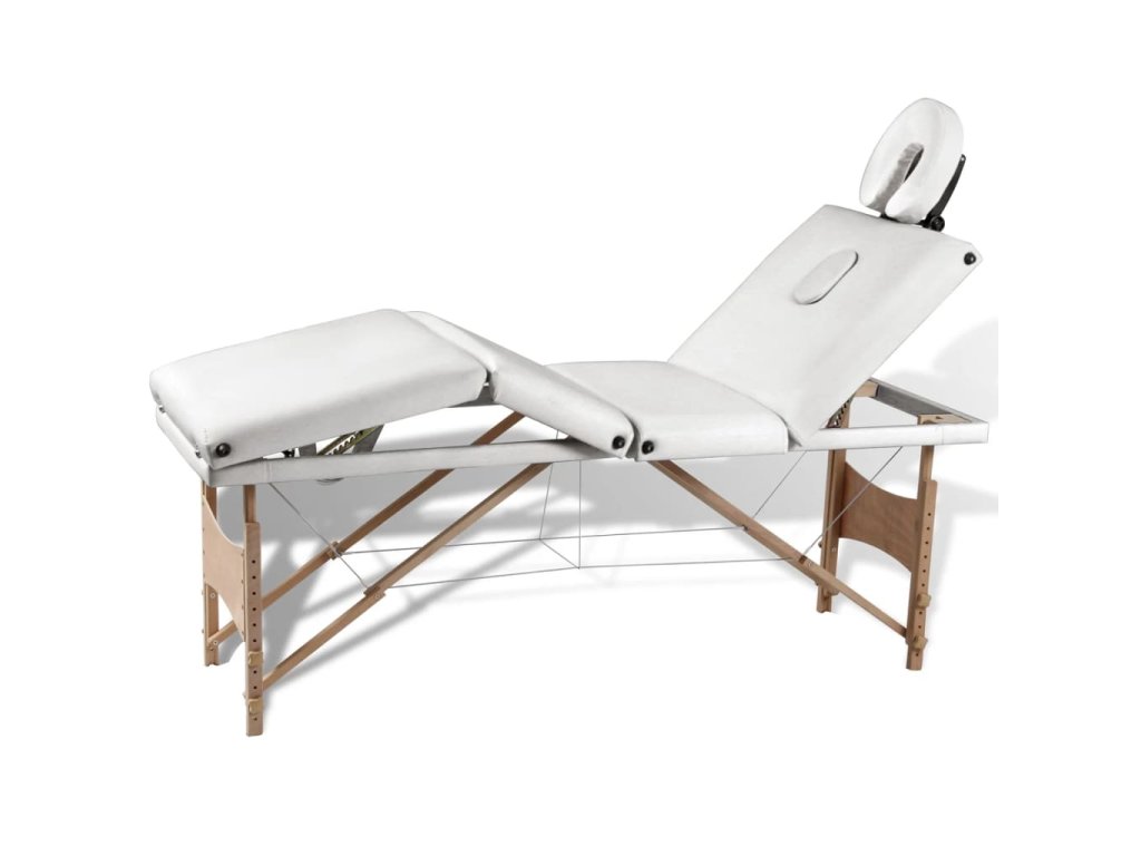 Multidom Krémovo biely skladací masážny stôl, 4 zóny, drevený rám