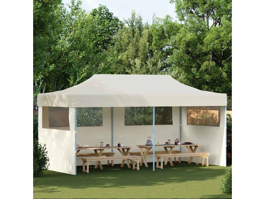 Tento skladací párty stan/altánok bude ideálnym riešením pre komerčné aj osobné použitie. Je vhodný na večierky, grilovačky, trhy, športové podujatia, kempovanie, záhradné predaje, školské podujatia a veľtrhy. 100% vodotesná oxfordská strecha s PVC povlakom poskytuje maximálnu flexibilitu, odolnosť voči poveternostným vplyvom a UV ochranu. Pre úplnú ochranu môže naša stena pokryť menšie boky aj zadnú stranu.