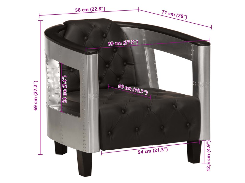 Kreslo v leteckom štýle aviator je vyrobené z pravej kože a dodá do vašej domácnosti luxusný nádych. Vytvorí pohodlné miesto na sedenie. Vďaka hliníkovým opierkam na ruky je kreslo stabilné. Opierky a hrubé čalúnenie z pravej kože zaisťujú pohodlie.