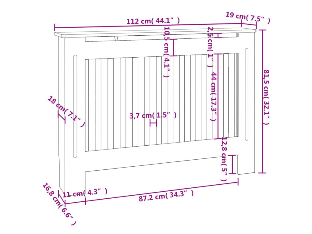 Bol navrhnutý tak, aby ozdobným spôsobom zakryl radiátor a vytvoril dodatočný priestor na uloženie kníh, rámov fotografií, dekorácií, atď. Je vyrobený z vysokokvalitného MDF, a preto je pevný a odolný. Kryt má moderný, roštový dizajn, ktorý sa hodí do každého interiéru a dá sa veľmi jednoducho namontovať na radiátor.