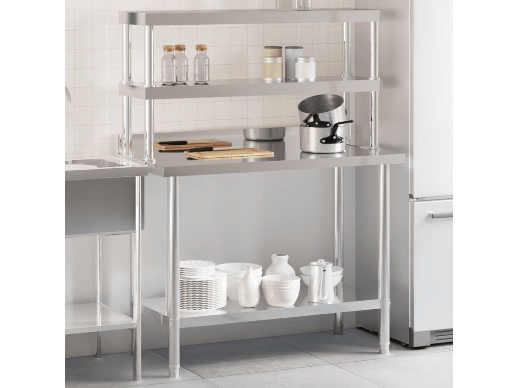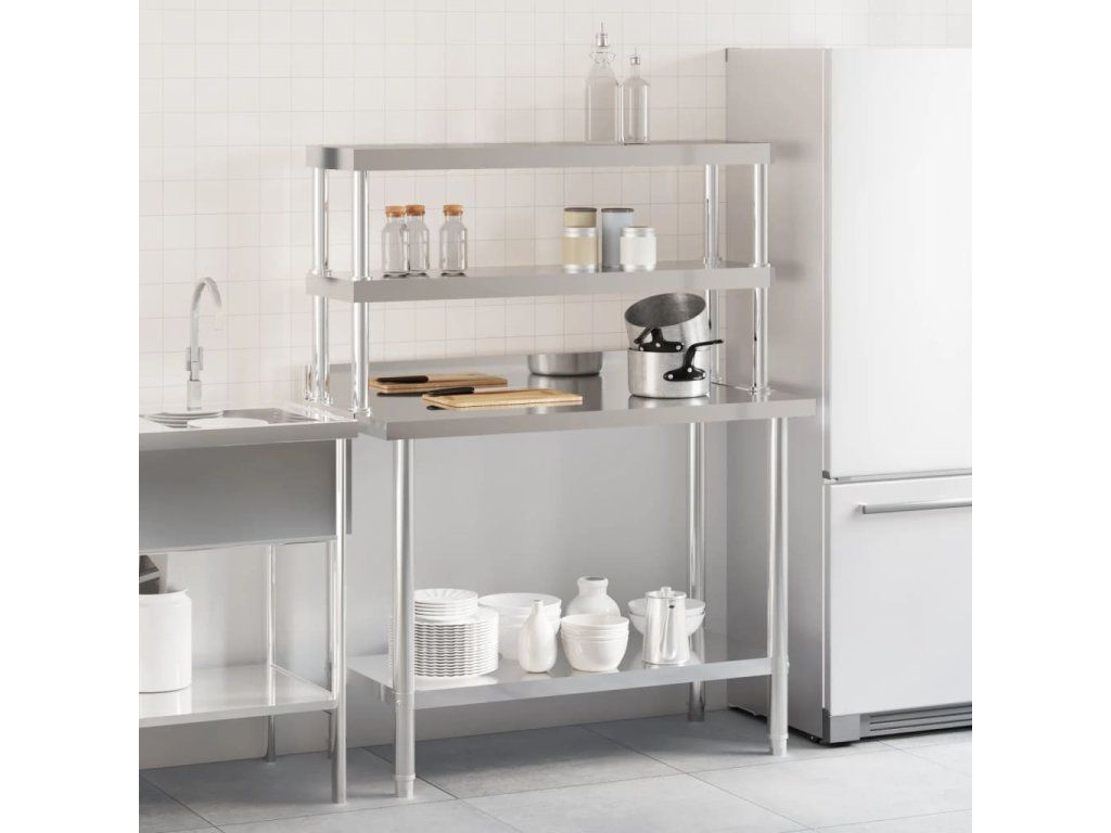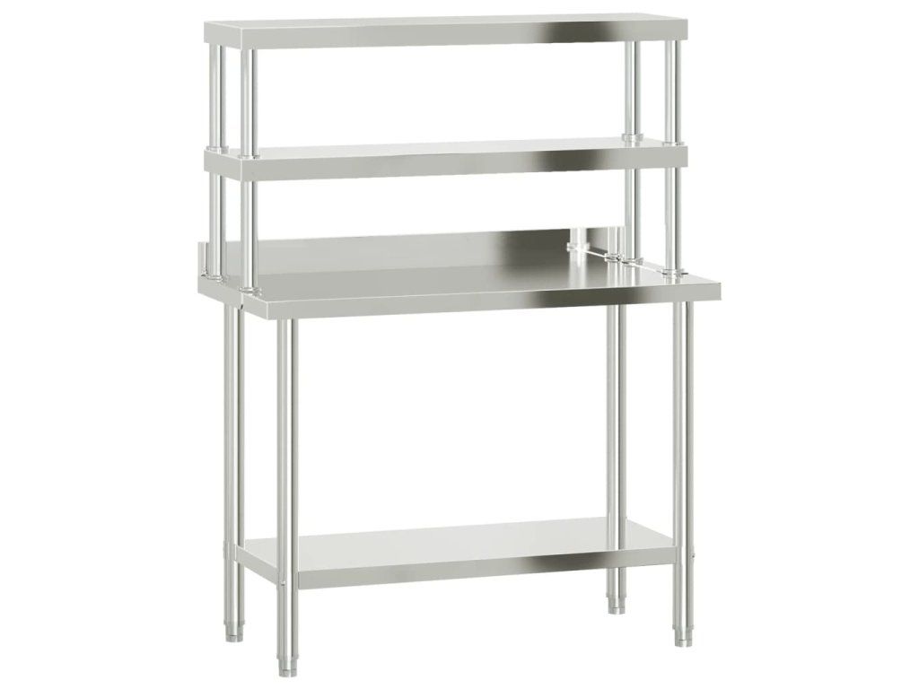 - Priestranné pracovisko: Prípravný stôl z nehrdzavejúcej ocele je navrhnutý so spodnou policou a 2-poschodovou hornou policou pre prispôsobený priestor, ktorý poskytuje dostatok úložného priestoru pre vašu mikrovlnnú rúru, kuchynské náčinie alebo iné nástroje, ktoré budete potrebovať.