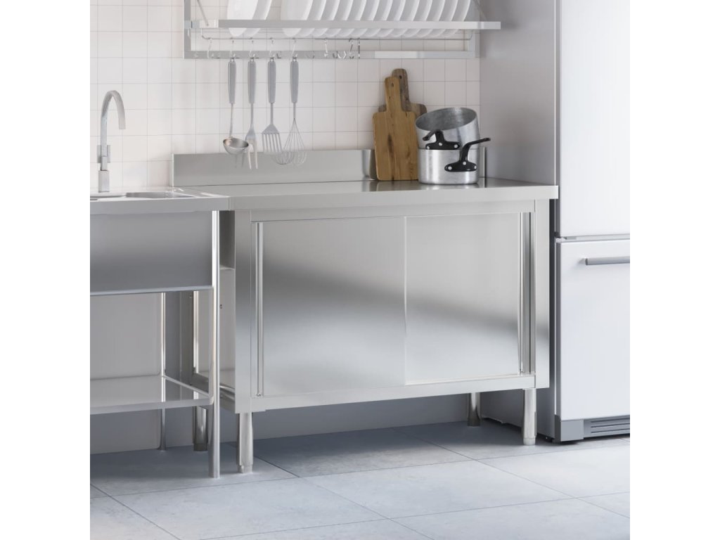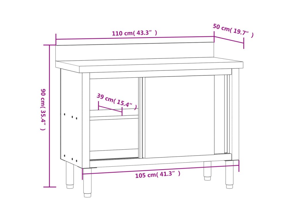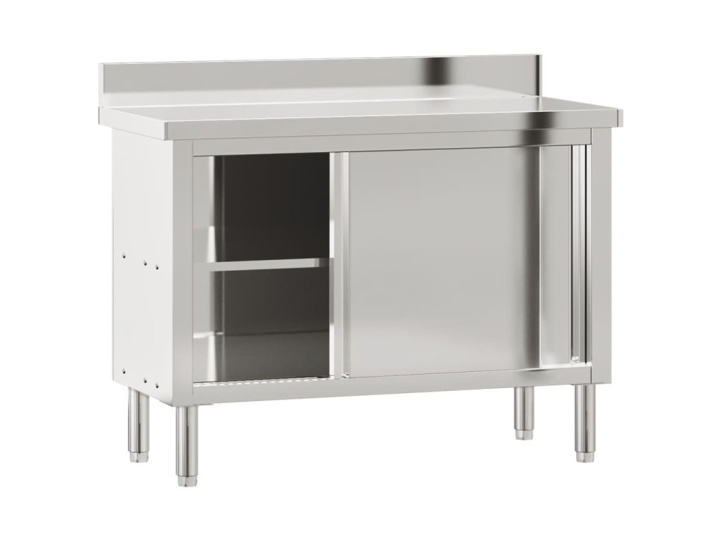 Multidom Kuchynský pracovný stôl s posuvnými dvierkami nerezová oceľ