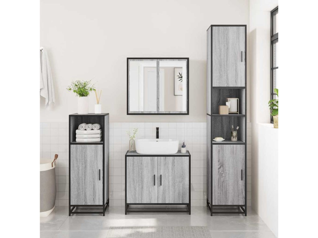 Multidom Kúpeľ. skrinka so zrkadlom sivá sonoma 65x20x60cm kompoz. drevo