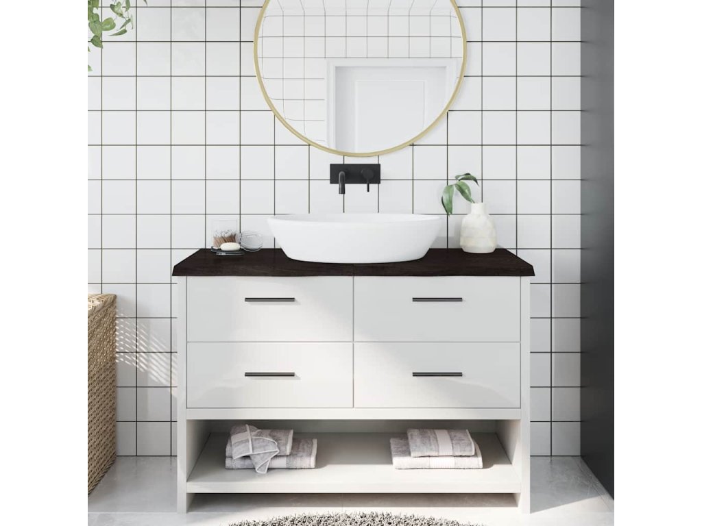 - Ošetrený povrch: kúpeľňová doska bola nalakovaná tmavou farbou, takže je pripravená na použitie, pretože nie je potrebná ďalšia povrchová úprava.