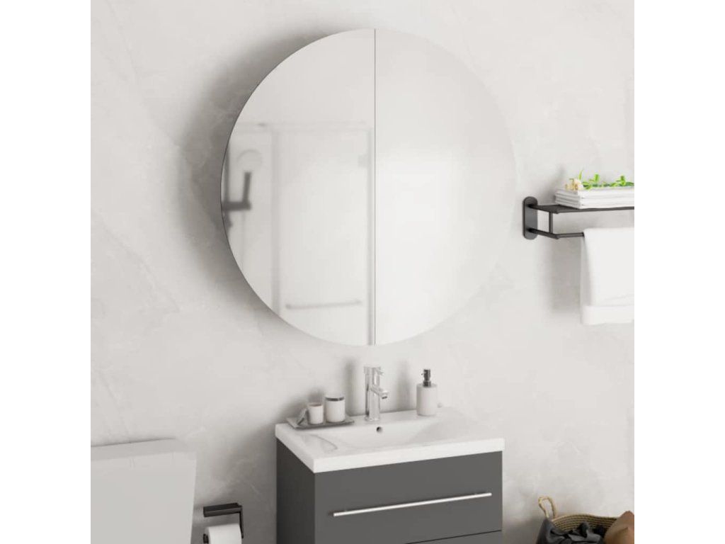 Majte svoje líčidlá usporiadané s touto trendovou kúpeľňovou skrinkou s okrúhlym zrkadlom a LED!