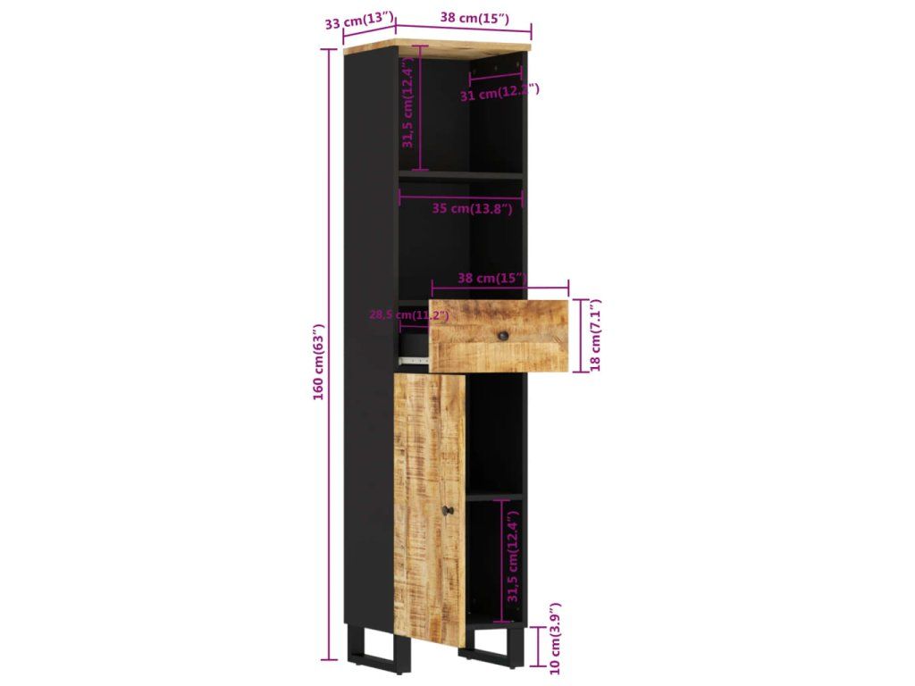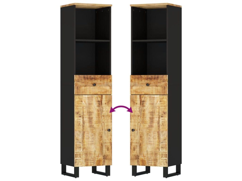 - Masívne mangové drevo: Táto kúpeľňová komoda je vyrobená z masívneho mangovníkového dreva. Odolný materiál: Masívne mangovníkové drevo je pevné tropické tvrdé drevo, z ktorého sa vytvára robustný nábytok. Vďaka krásnej textúre dreva je každý kus nábytku výnimočný a trochu odlišný od ostatných.
