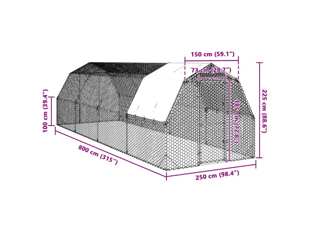 Multidom Kurací výbeh so strechou 2,5x8x2,25 m Pozinkovaná oceľ