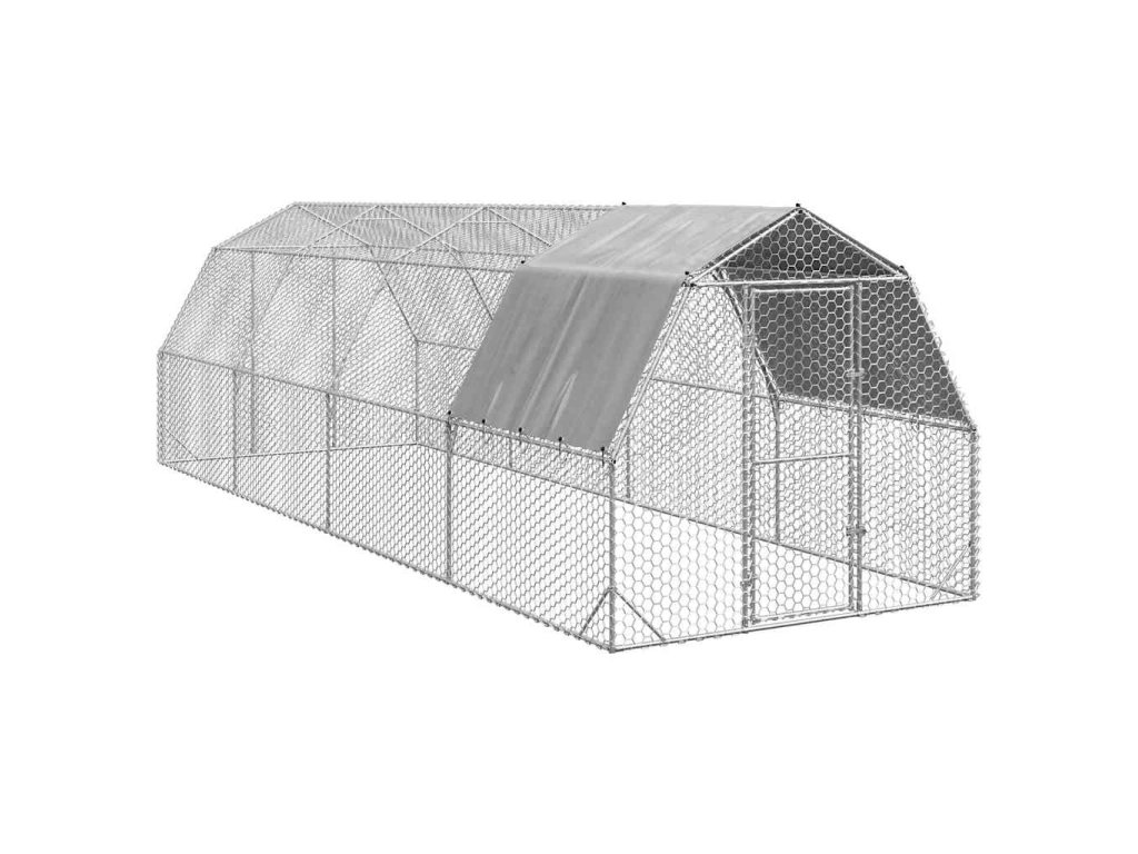 - Pevná konštrukcia: Tento kurník je vyrobený z pozinkovaného oceľového rámu a zaisťuje dlhotrvajúcu trvanlivosť a odolnosť proti hrdzi a poskytuje bezpečné prostredie pre vaše kurčatá.