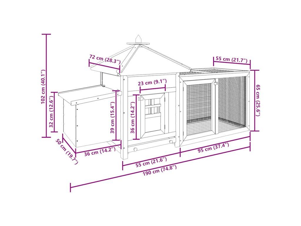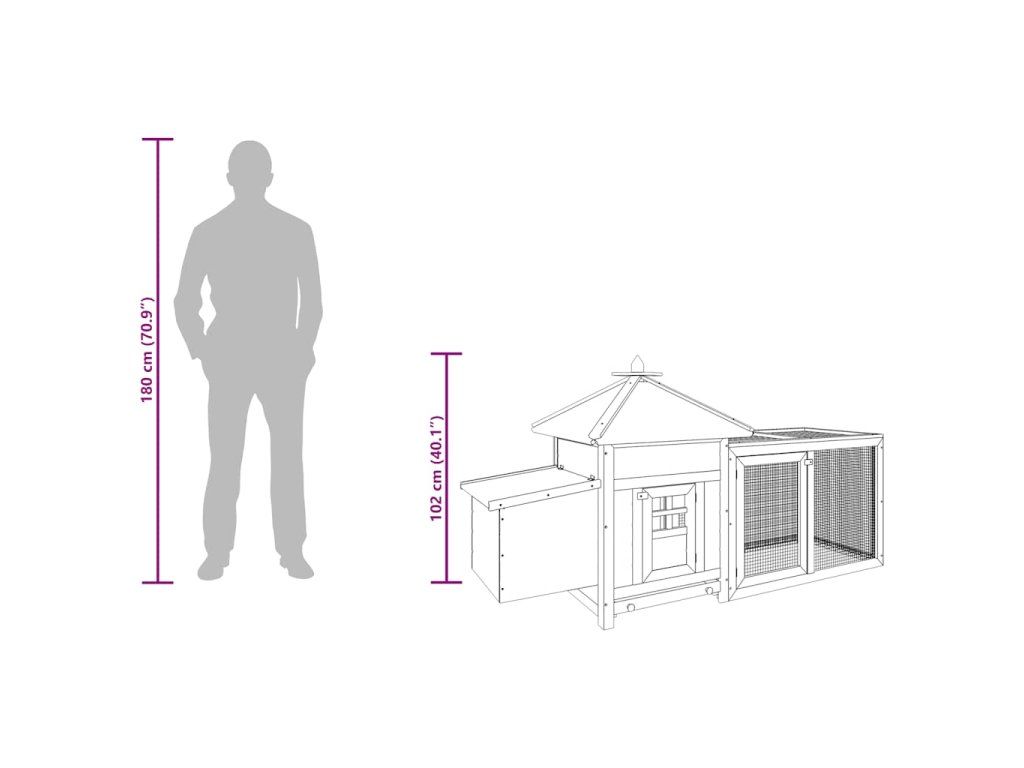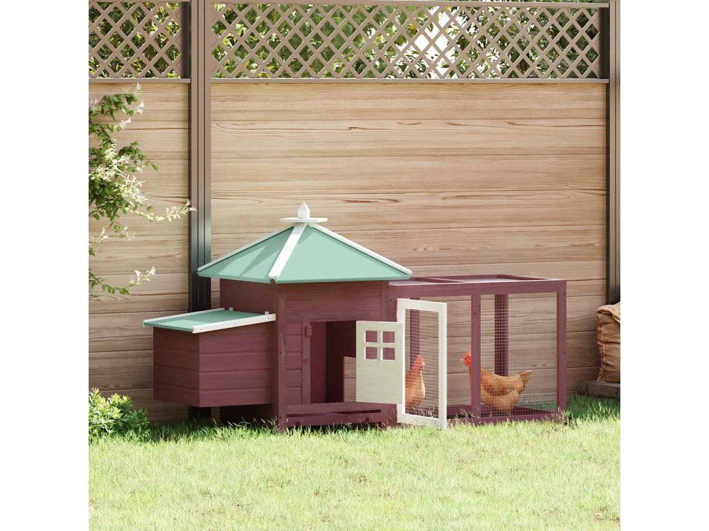 Kurín má komplexný dizajn a pozostáva z jedného domčeka, jedného hniezda na znášanie vajec a jedného veľmi veľkého výbehu oploteného pozinkovaným oceľovým pletivom, ktoré sa postará o to, aby vaše domáce zvieratá mohli dýchať čerstvý vzduch, a zároveň vám umožní hydinu kedykoľvek skontrolovať. Kurín má rám z jedľového masívu. Sklopná strecha je pokrytá vodovzdornou látkou, a tak zvieratá ochráni pred dažďom. Pohodlný koterec poskytuje hydine a iným malým zvieratám príjemné miesto na spanie. Strecha sa dá otvoriť, aby ste mohli z kurína jednoducho vyberať vajcia.