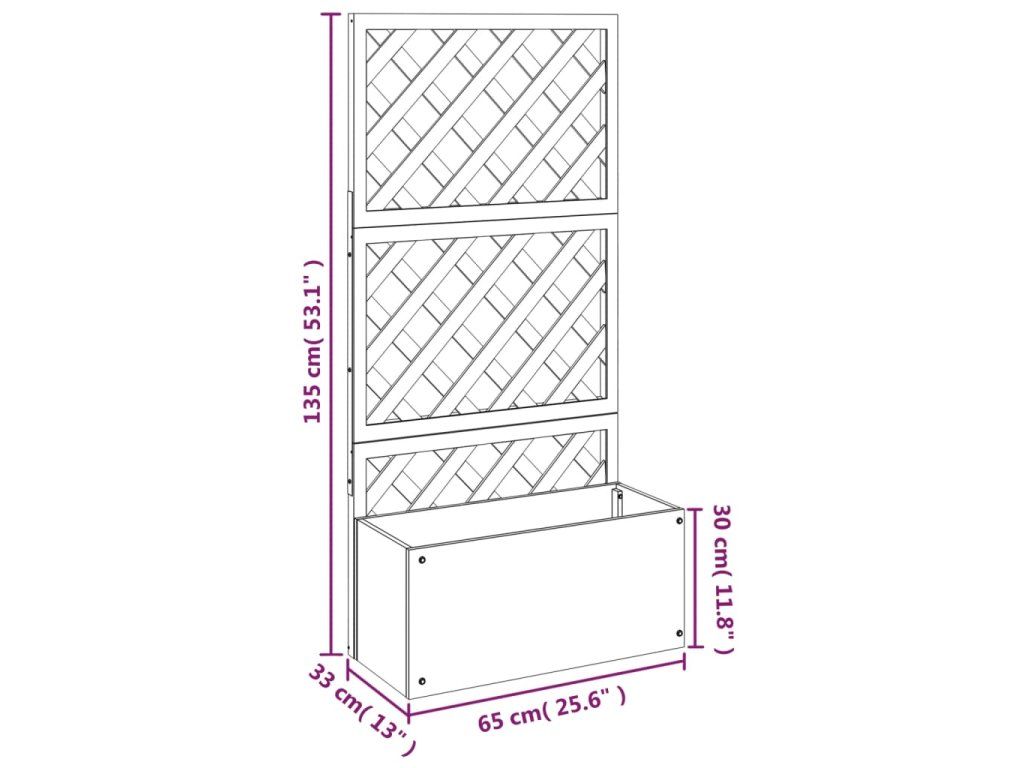 - Rozmery nádoby na rastliny: 65 x 33 x 30 cm (D x Š x V)