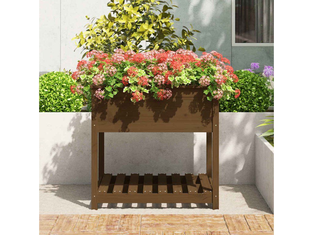 Multidom Kvetináč s policou medovohnedý 82,5x82,5x81 cm masívna borovica