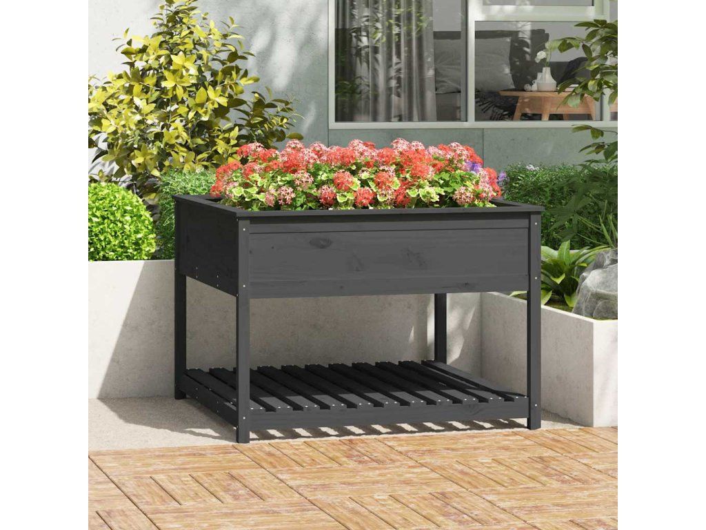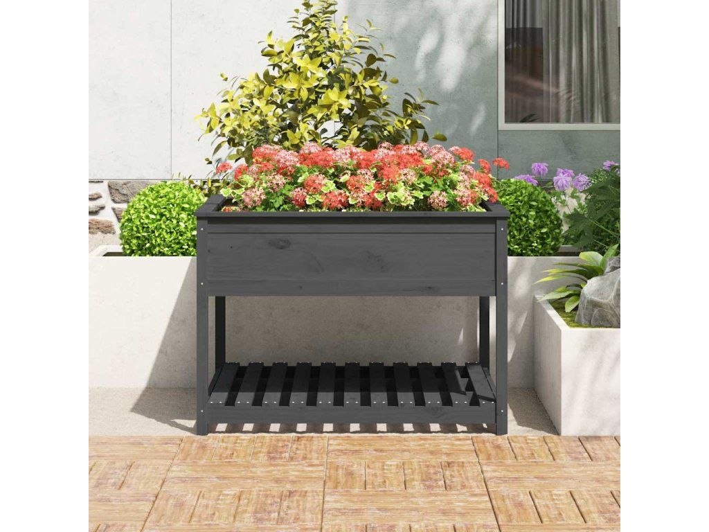 Multidom Kvetináč s policou sivý 111,5x111,5x81 cm masívna borovica