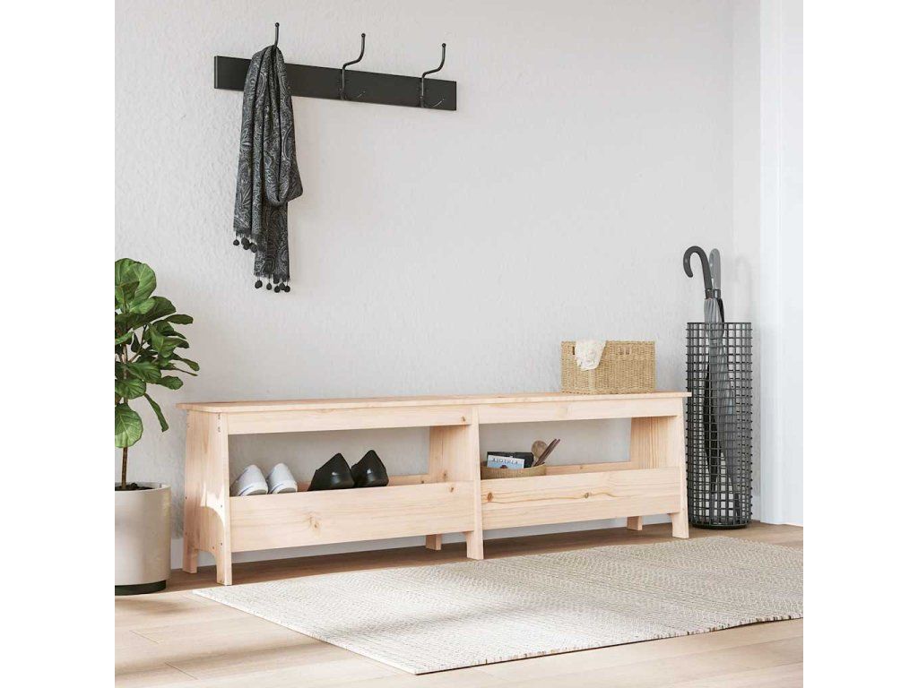 - Masívne borovicové drevo: Táto lavička do predsiene je vyrobená z masívneho borovicového dreva. Masívne borovicové drevo je krásny prírodný materiál. Borovicové drevo má rovné vlákna a hrče dodávajú materiálu jeho charakteristický rustikálny vzhľad.