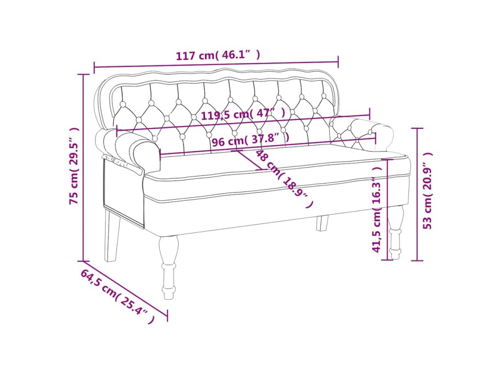 - Elegantný dizajn: Lavicová stolička má vlnovitý operadlo, gombíkové gombíky, zaoblené podrúčky a nohy v antickom štýle, ktoré dodávajú vášmu bytovému dekoru nádych elegancie.
