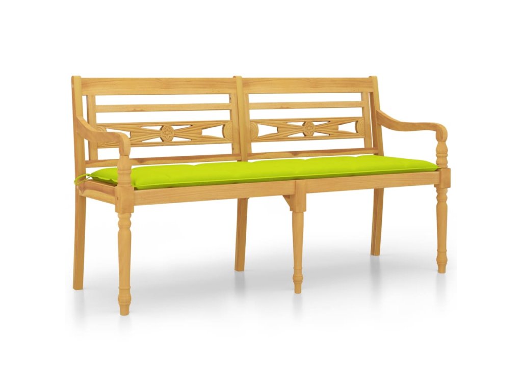 Multidom Lavička Batavia s bledozeleným vankúšom 150 cm tíkový masív