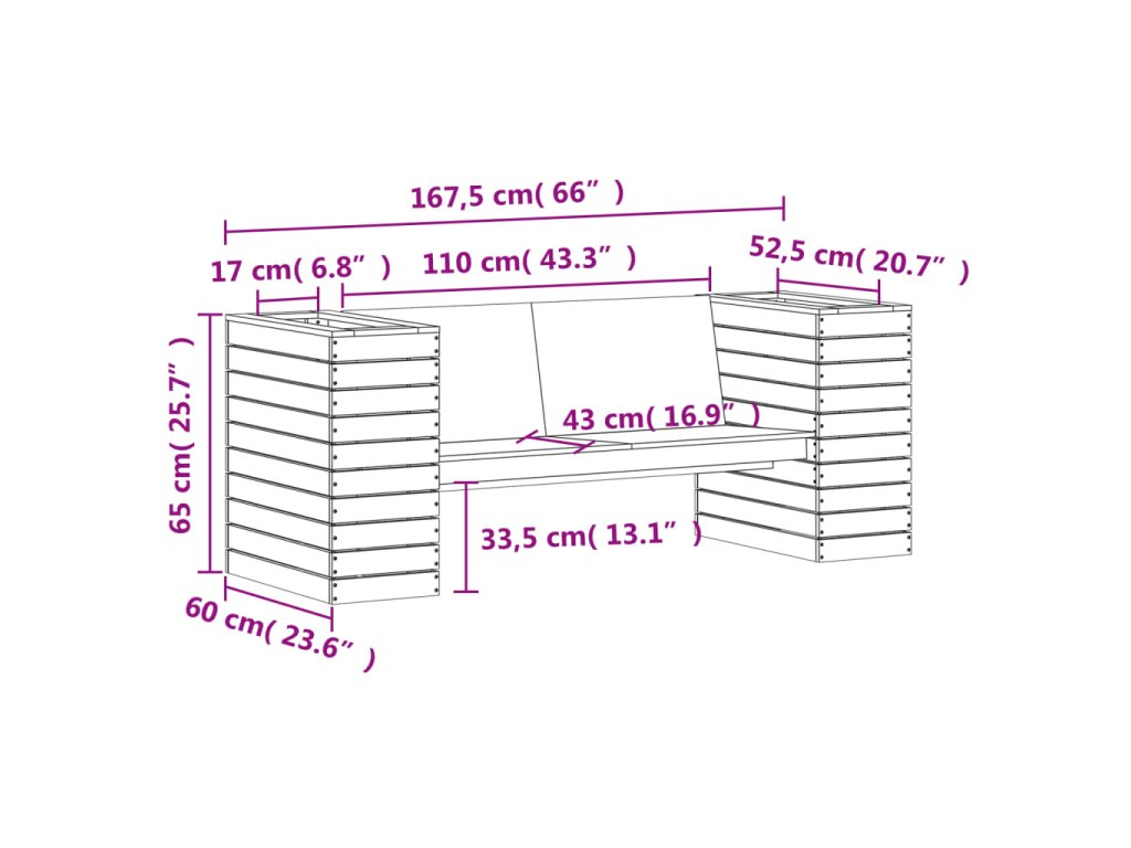 - Rozmery kvetináča (každého): 29 x 60 x 65 cm (D x Š x V)