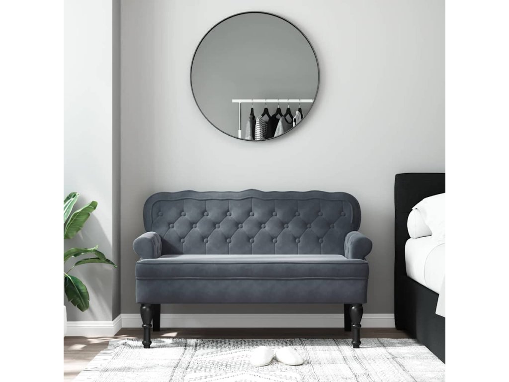 Multidom Lavička s operadlom tmavosivá 119,5x64,5x75 cm zamat