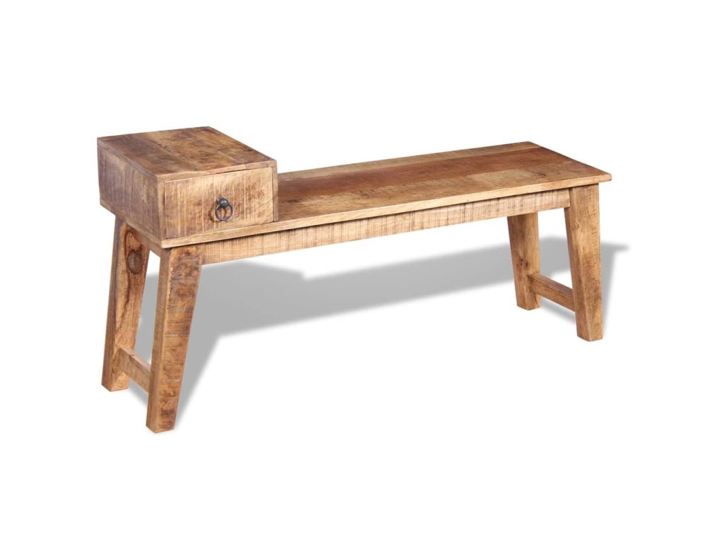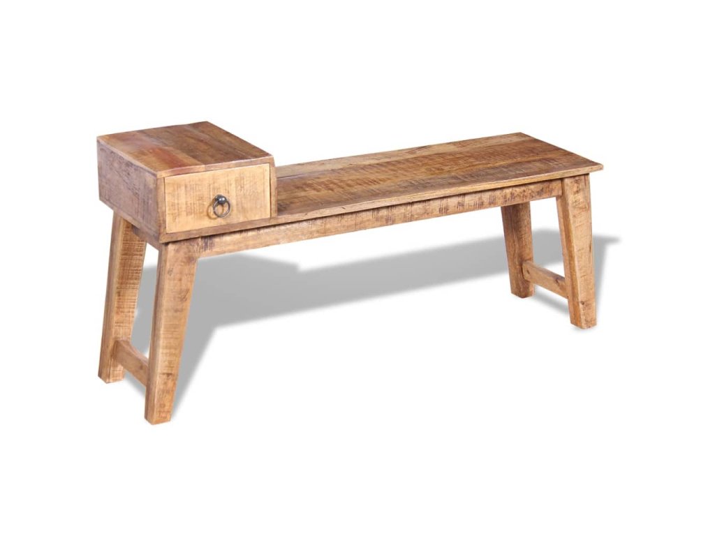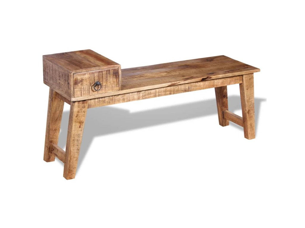 Táto lavička je vyrobená z vysokokvalitného mangového masívu, vďaka čomu je pevná a trvácna. Lavička má zásuvku, ktorá je ako stvorená na odkladanie malých predmetov, ako sú kľúče, mp3 prehrávače a iné drobnosti. Vďaka vynikajúcemu remeselnému opracovaniu a krásnej textúre dreva je každý kus nábytku výnimočný a trochu odlišný od ostatných.