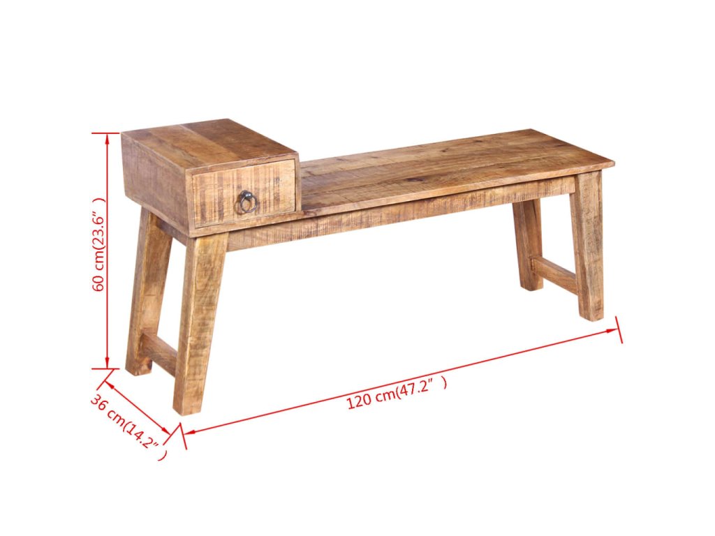 Multidom Lavička so zásuvkou, masívne mangovníkové drevo, 120x36x60 cm