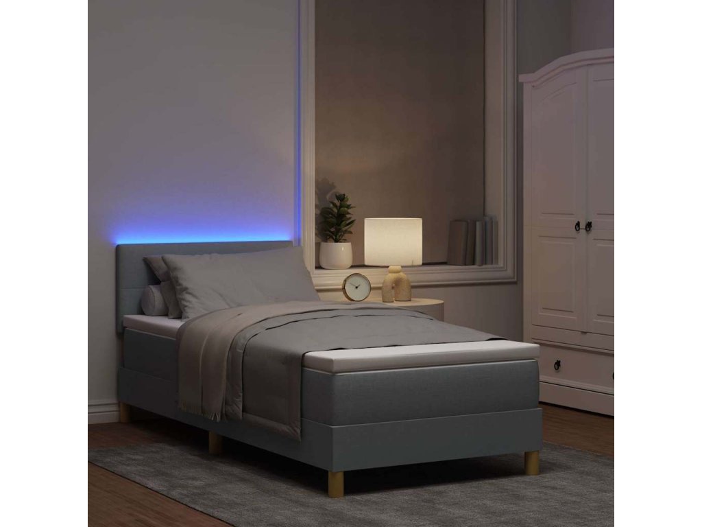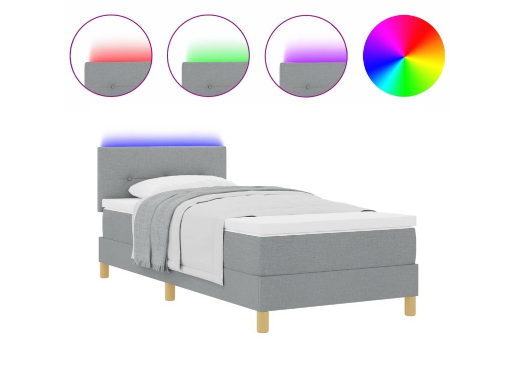 Multidom LED box s pružinami s matracmi Svetlosivá 100 x 200 cm látka