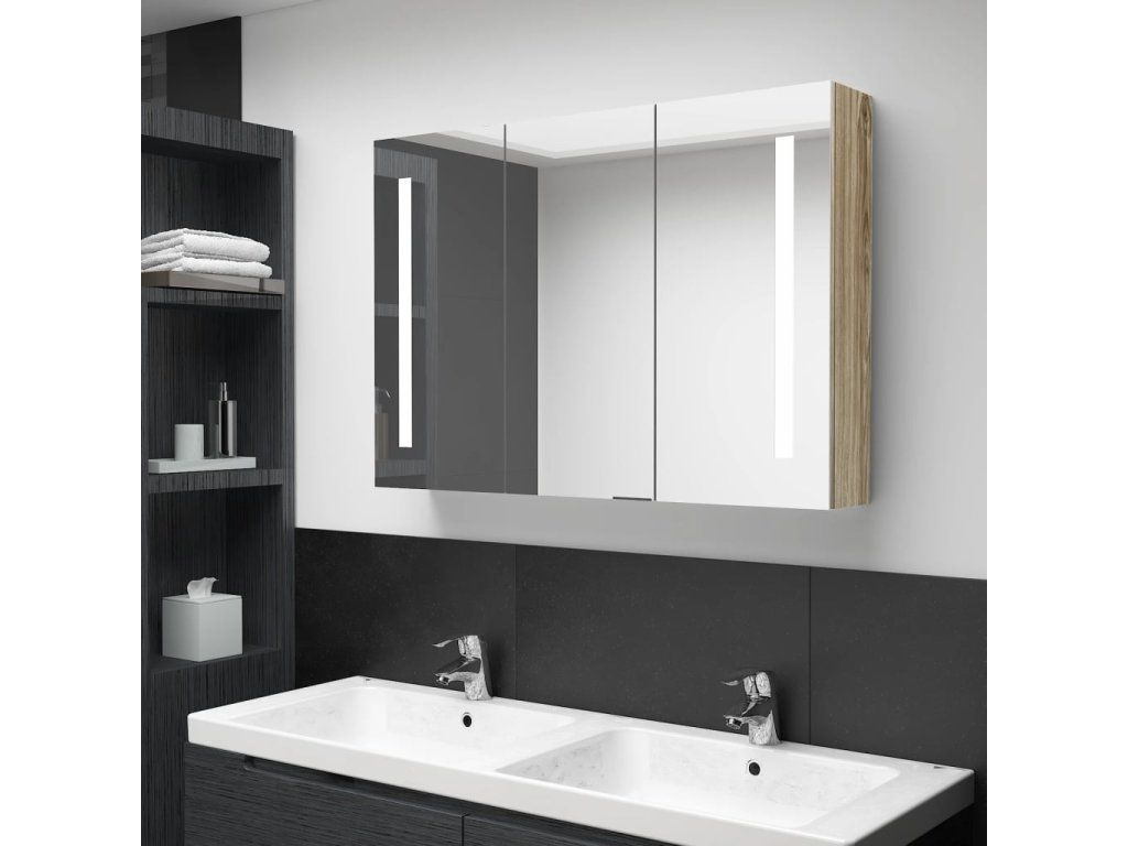 Multidom LED kúpeľňová zrkadlová skrinka 89x14x62 cm dubová