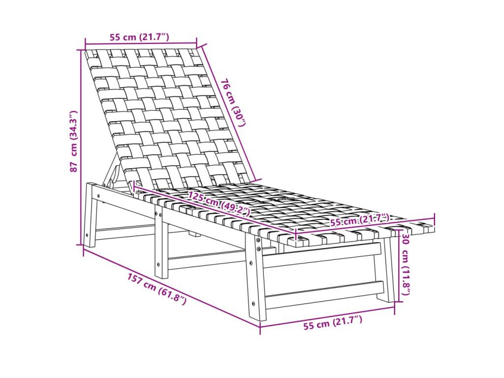 - Dizajn popruhov: Sedadlo a operadlo záhradného ležadla sú navrhnuté so sieťovinou pre pohodlie, eleganciu a priedušnosť.
