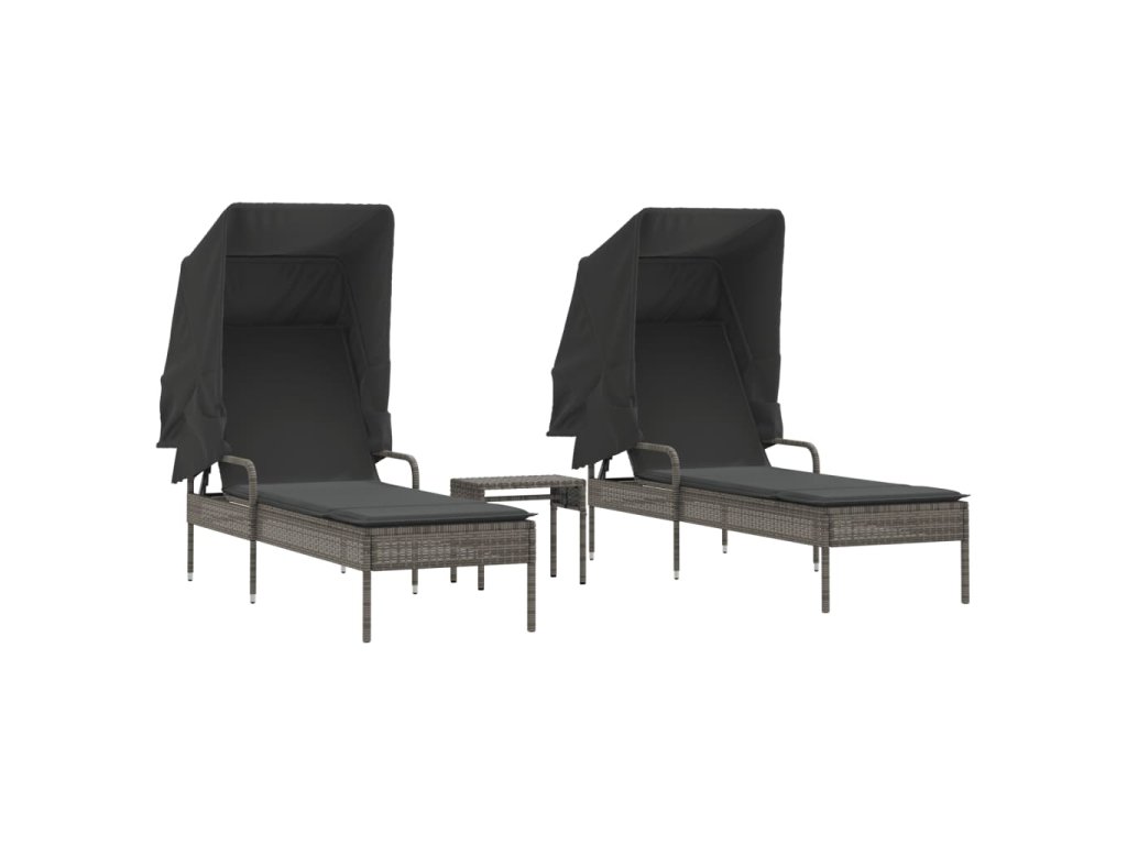 Multidom Lehátka 2 ks so strieškou a stolíkom sivé polyratan