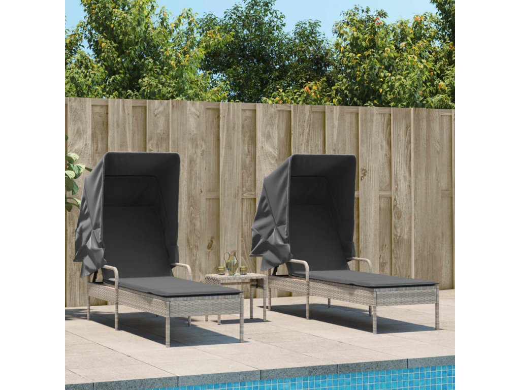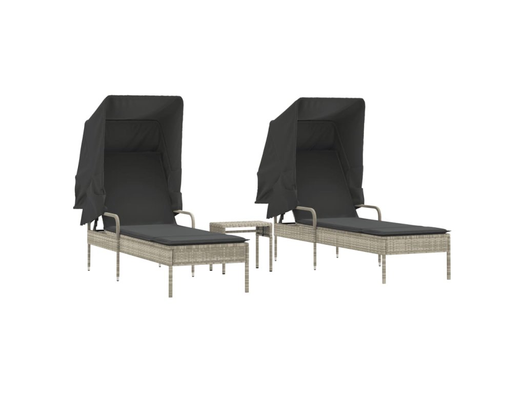 Multidom Lehátka 2 ks so strieškou a stolíkom svetlosivé polyratan