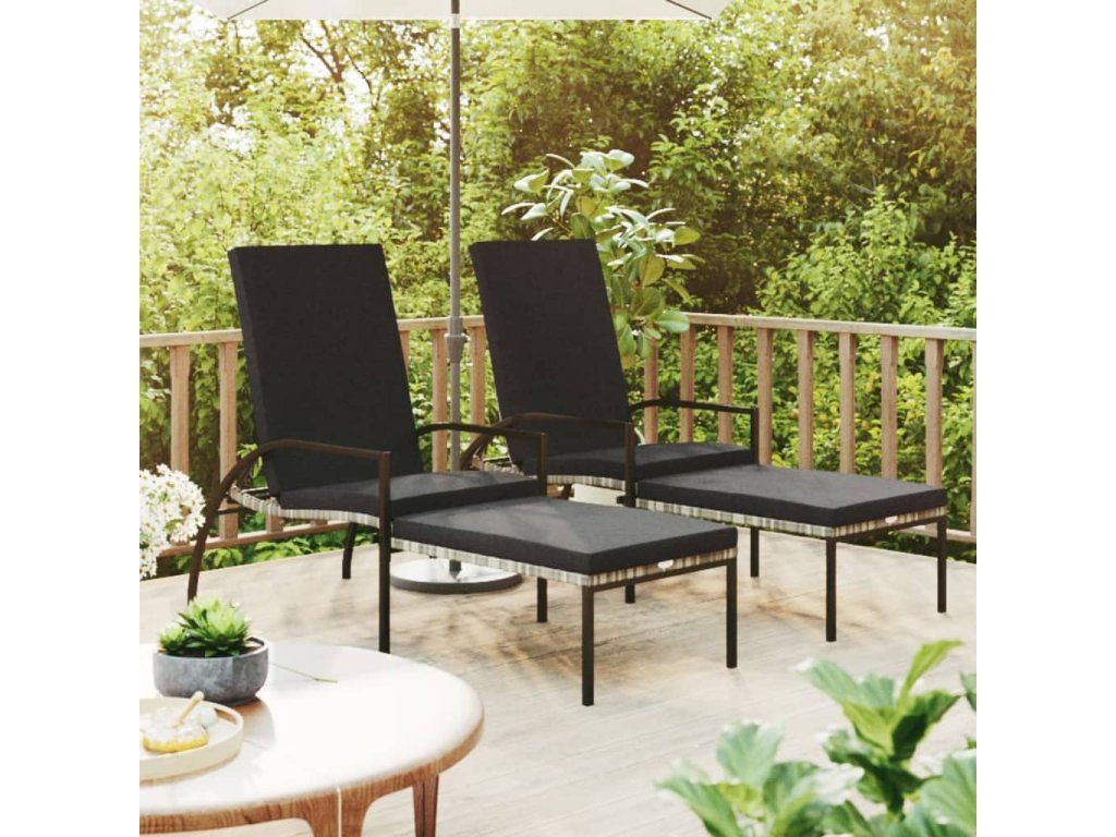 Multidom Lehátka na opaľovanie 2 ks s opierkami nôh PE ratan sivé