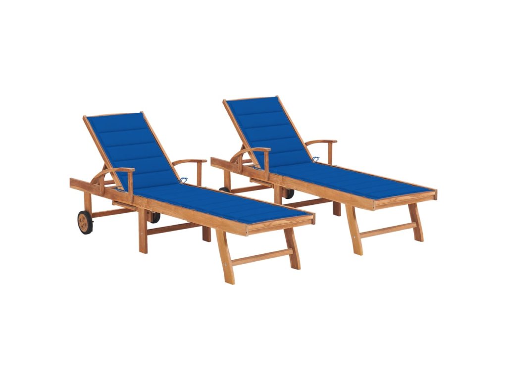 Multidom Lehátka s vankúšmi 2 ks kráľovské modré teakové drevo