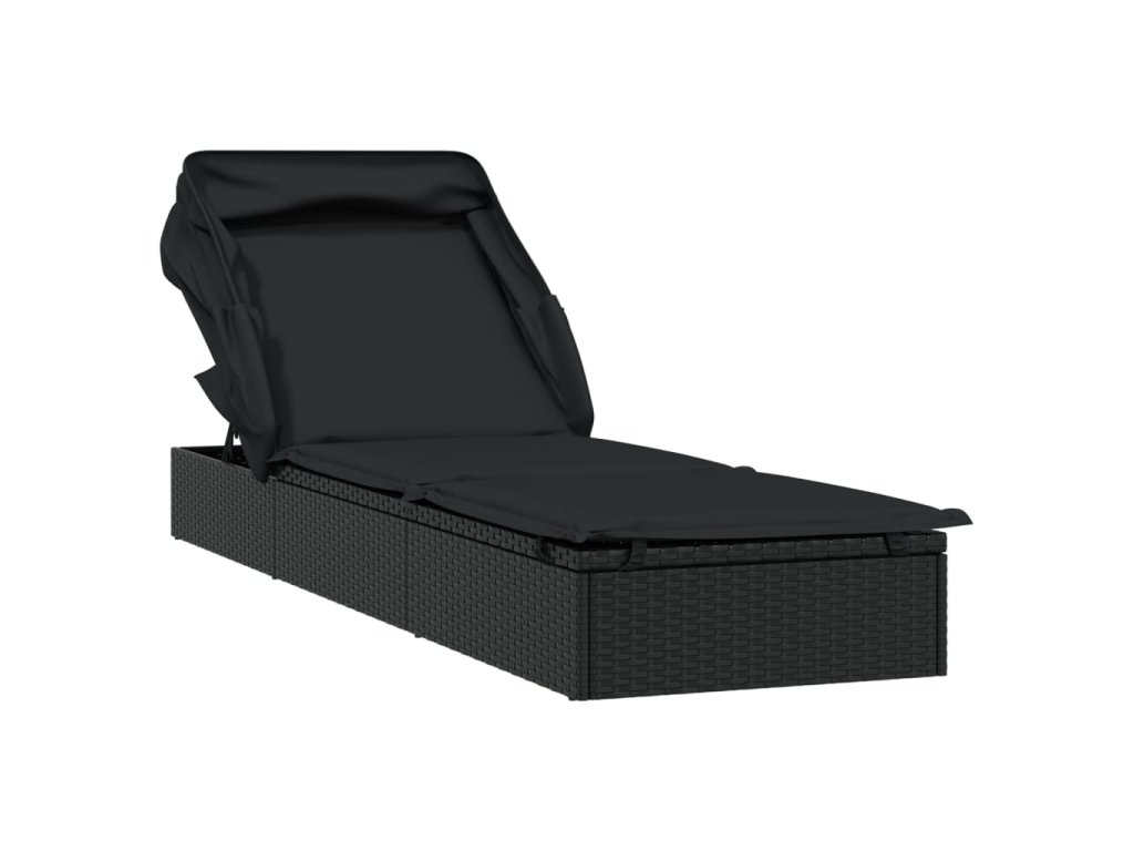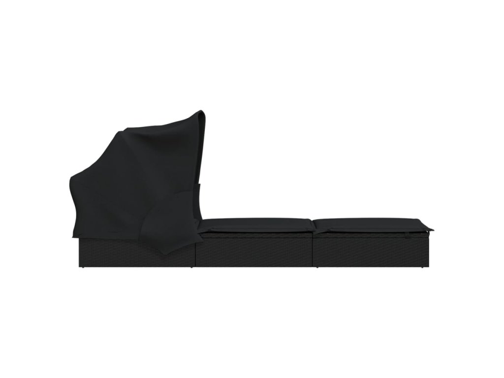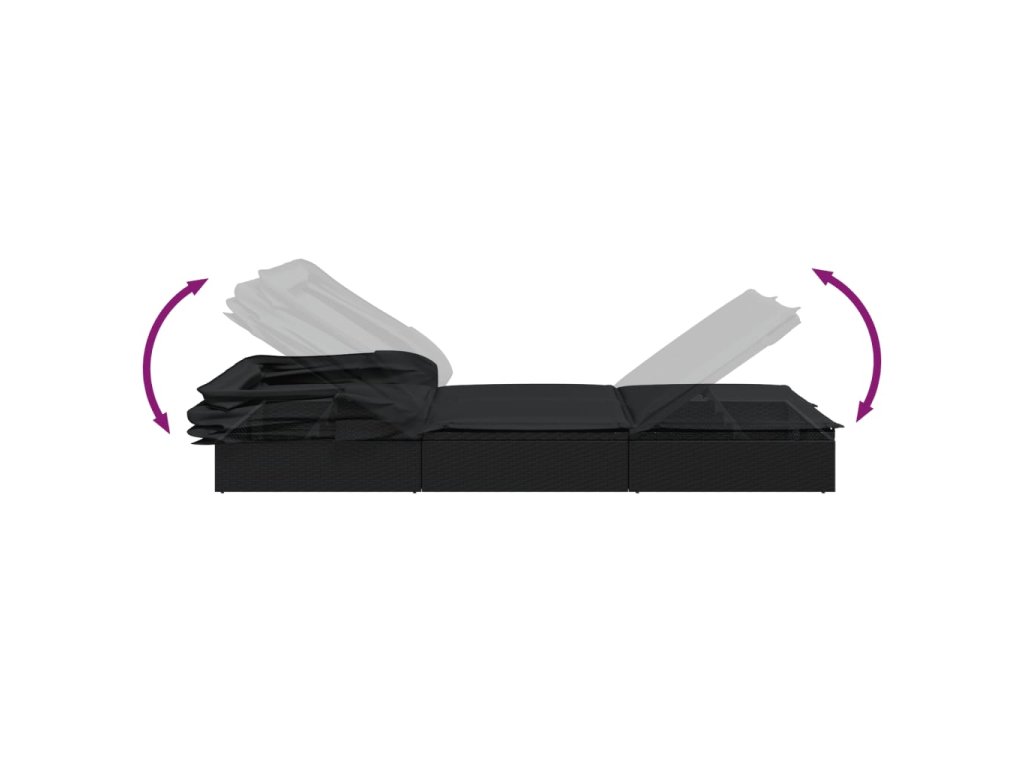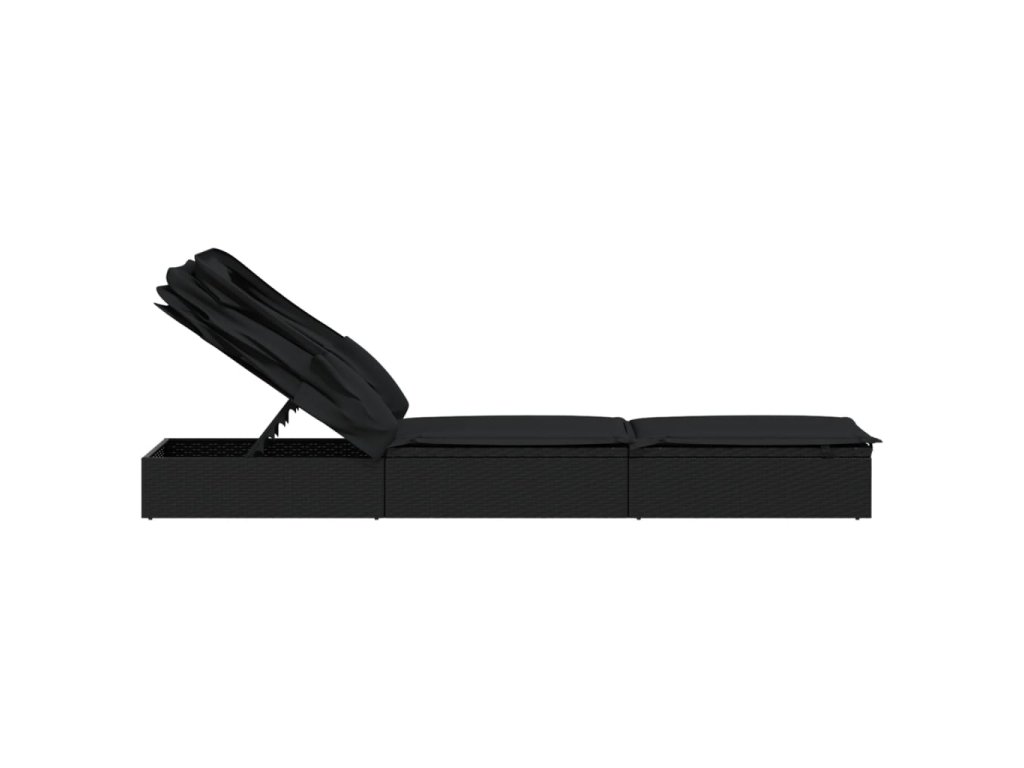 Multidom Lehátko so skladacou strechou čierne 213x63x97cm polyratan