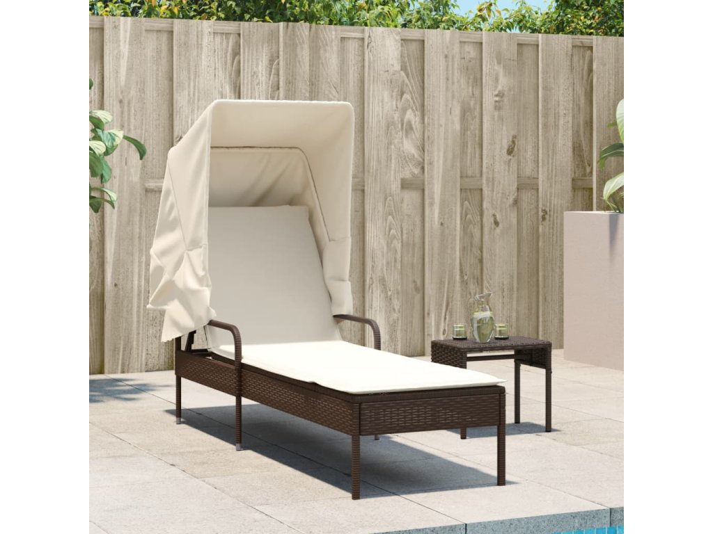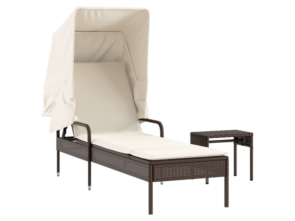 Multidom Lehátko so strieškou a stolíkom hnedé polyratan