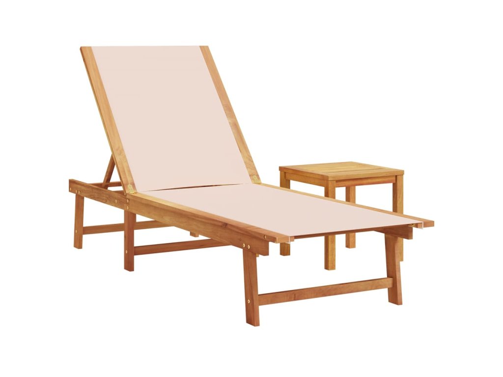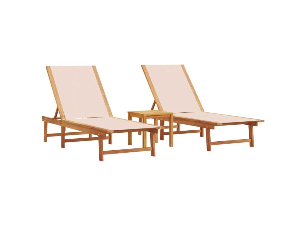 Multidom Ležadlá 2 ks so stolíkom krémové akáciový masív a textilén