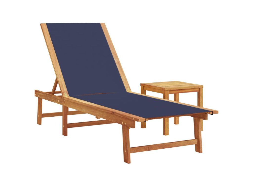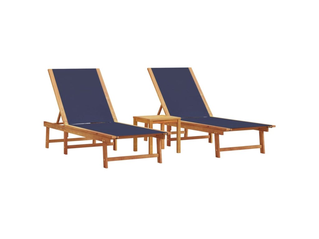 Multidom Ležadlá 2 ks so stolíkom modré akáciový masív a textilén