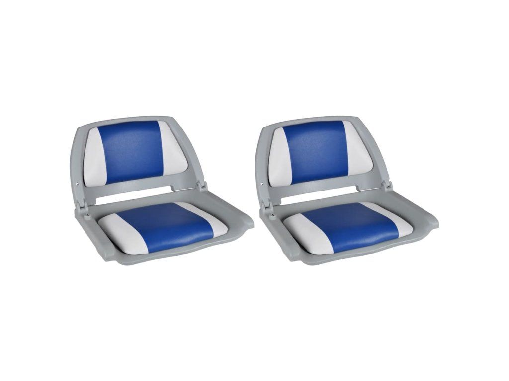 Multidom Lodné sedadlá 2 ks sklopné s operadlom a modro-bielym vankúšom 41x51x48 cm