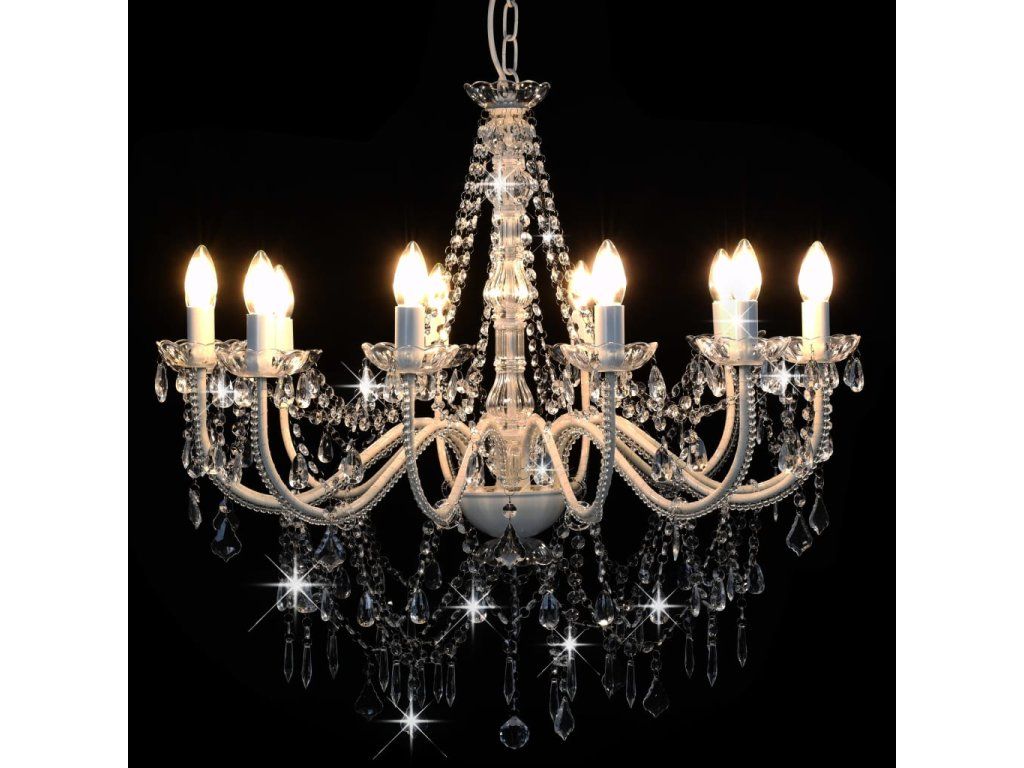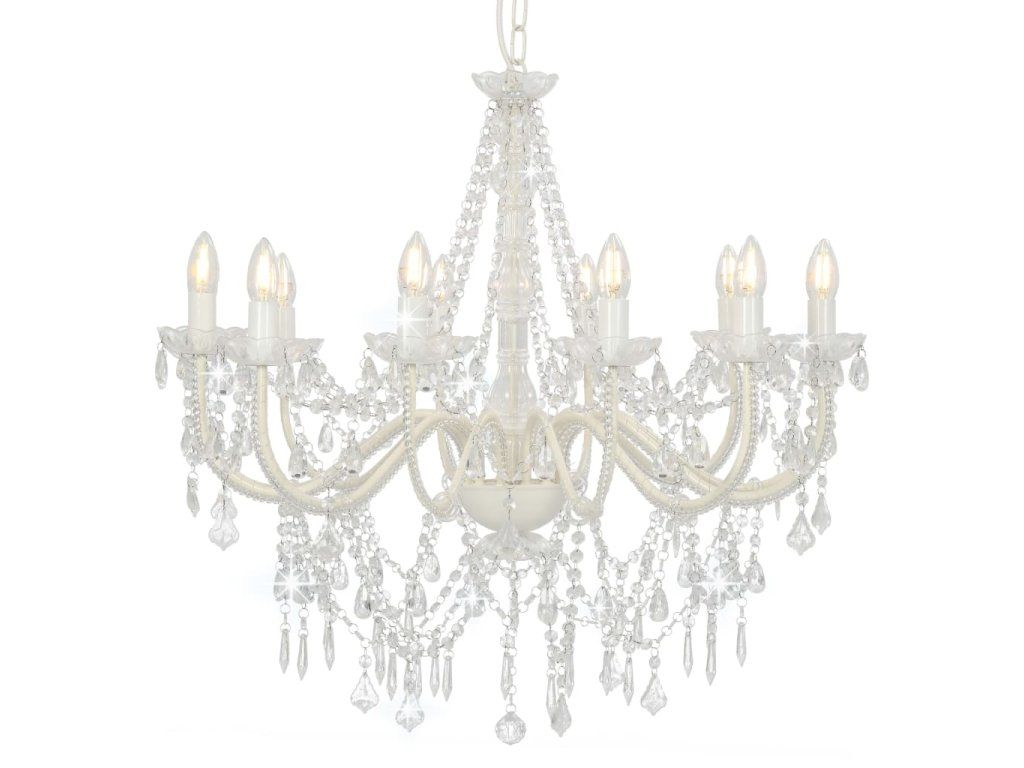 Multidom Luster s korálkami biely 12 x E14 žiaroviek